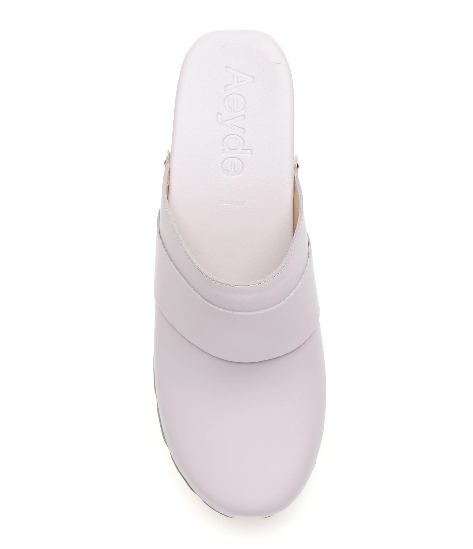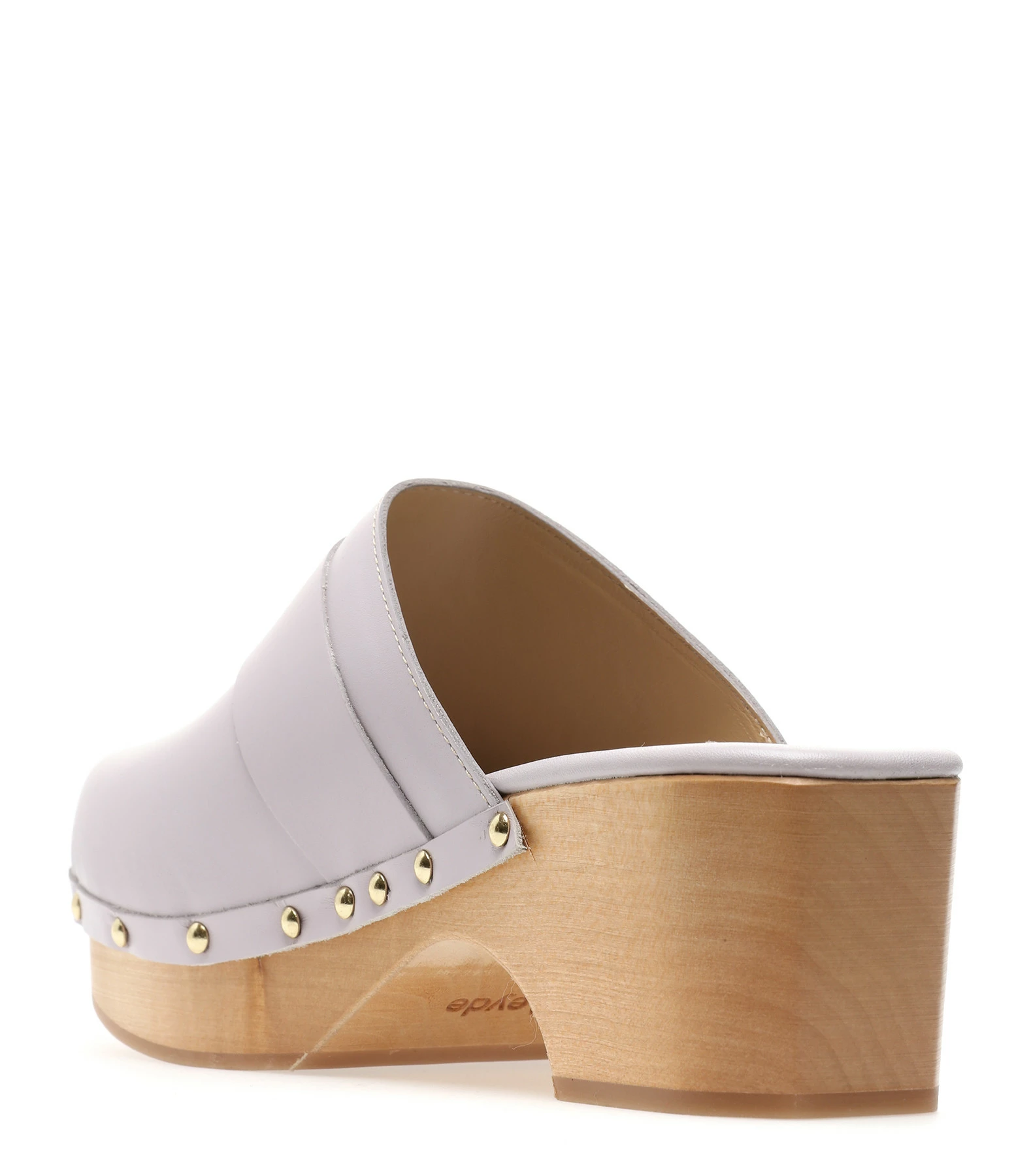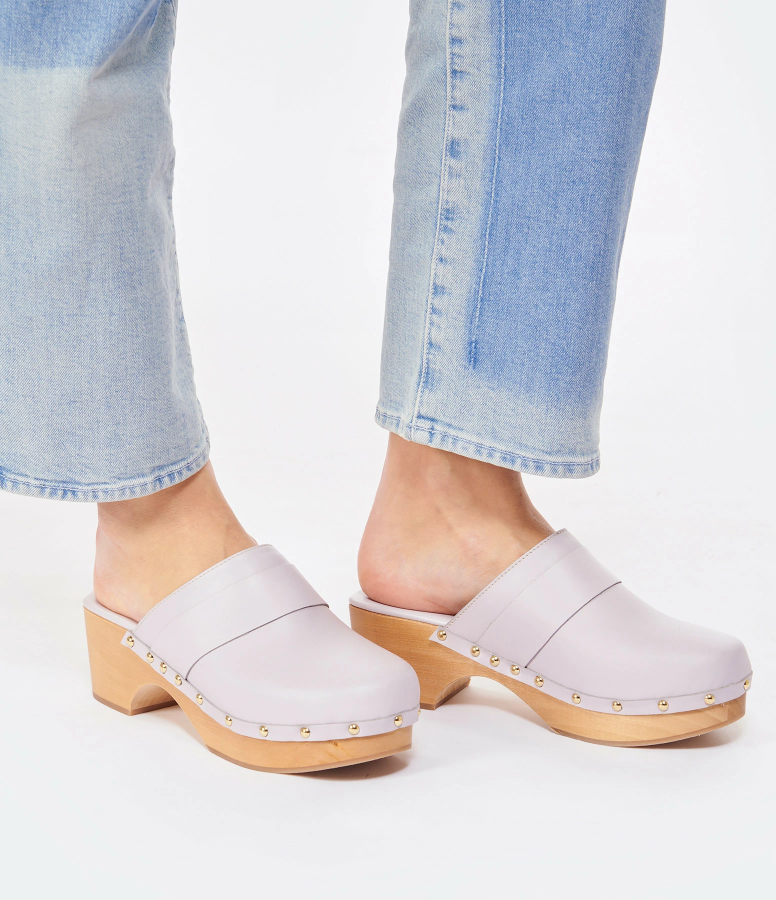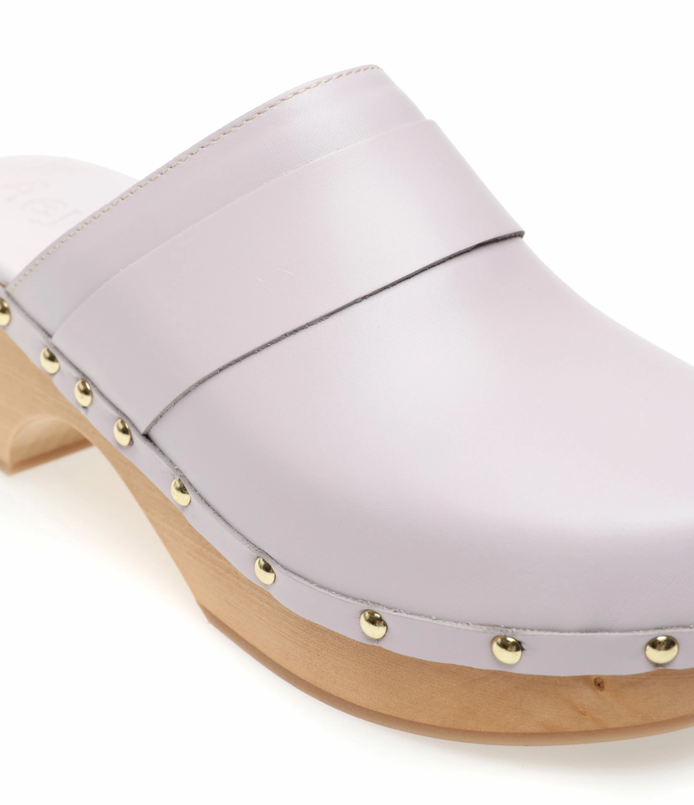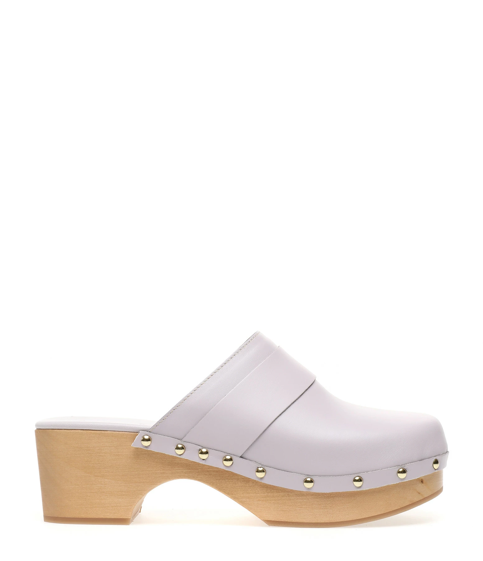 Sabots en cuir lilas. Clous dorés sur les côtés.