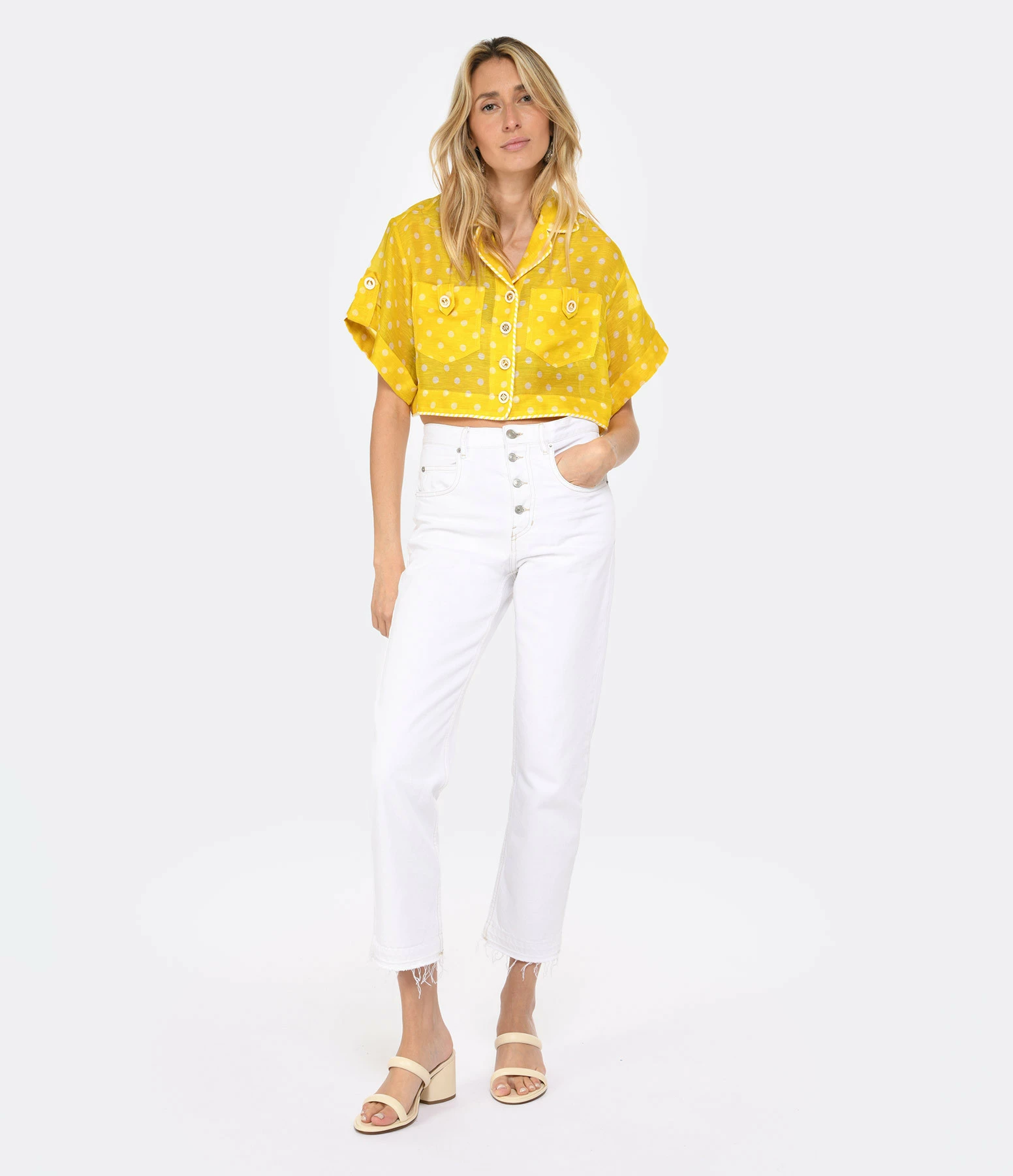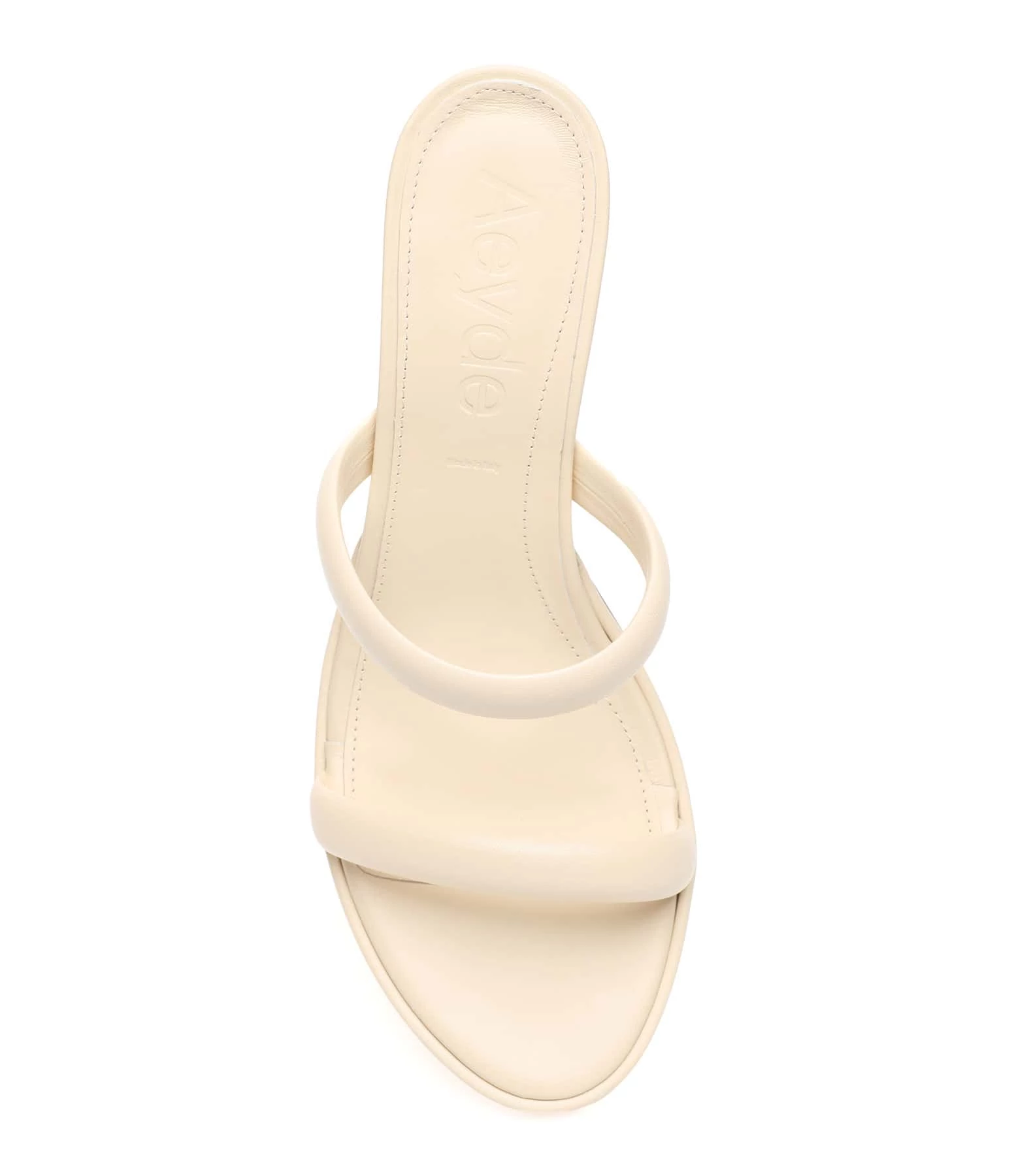 Sandales à talons en cuir crème. Deux brides sur le dessus.