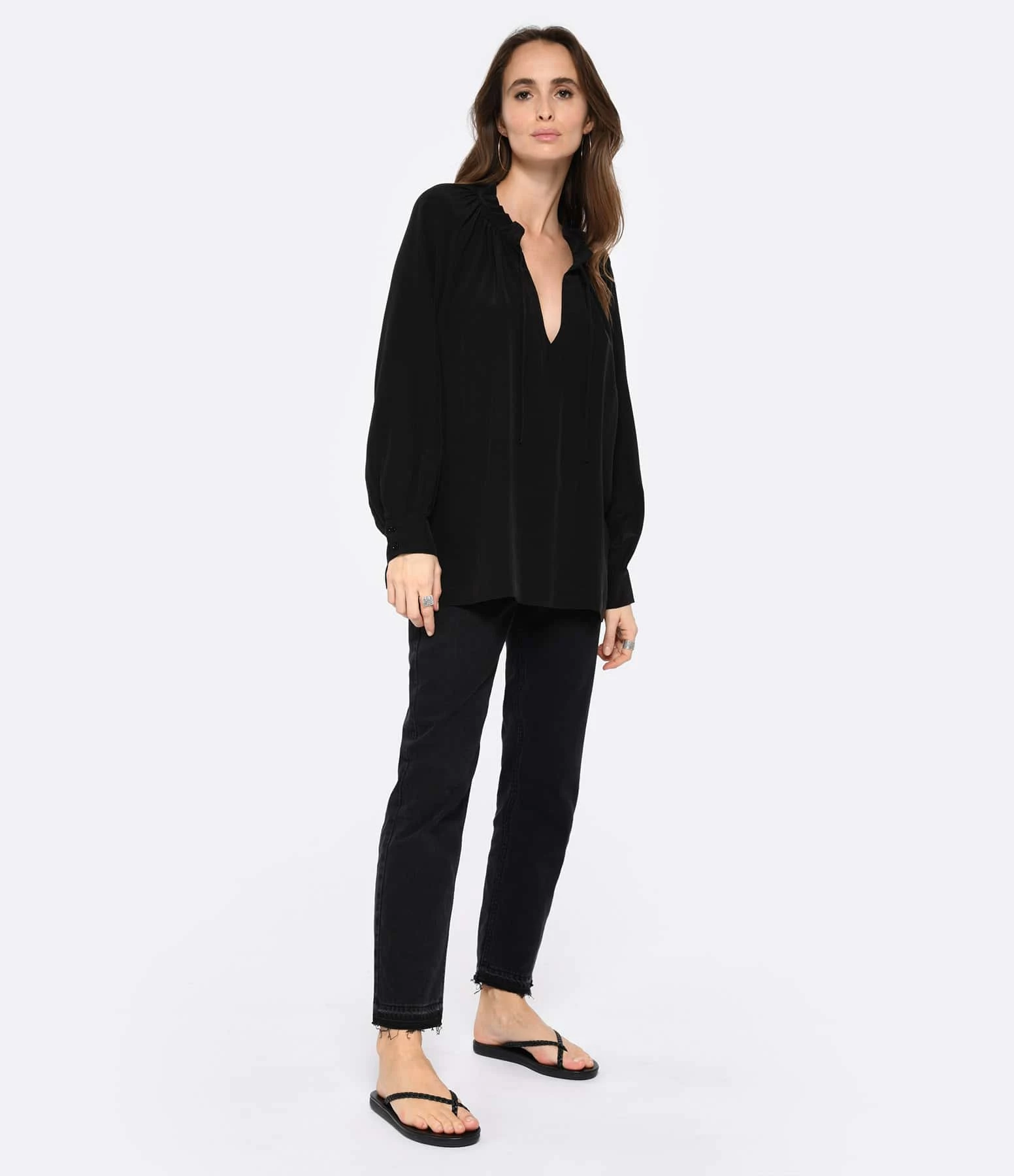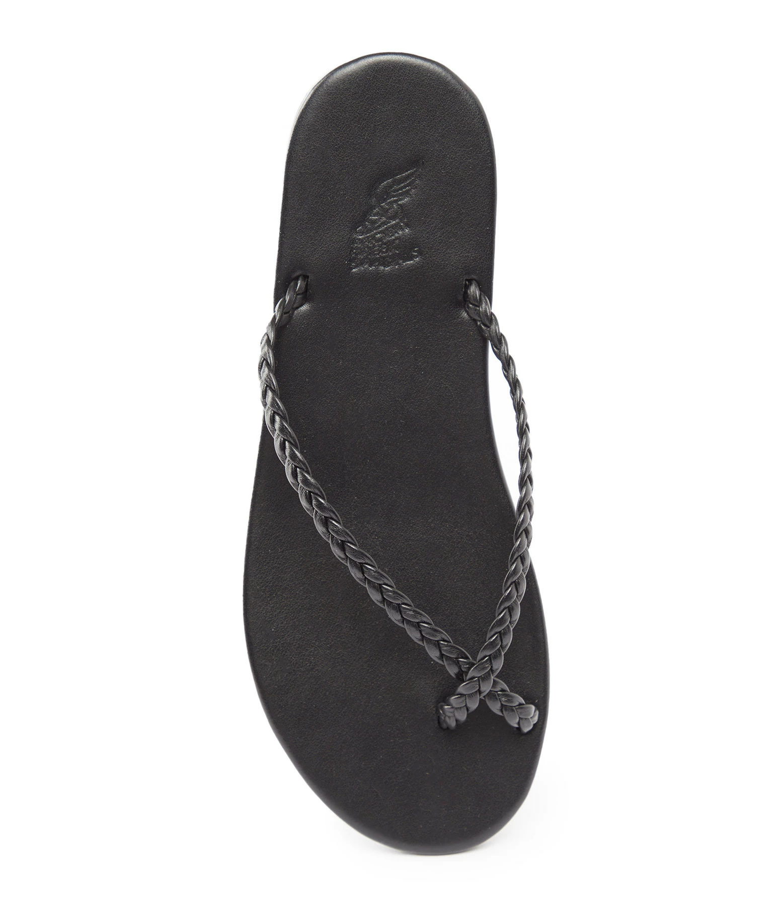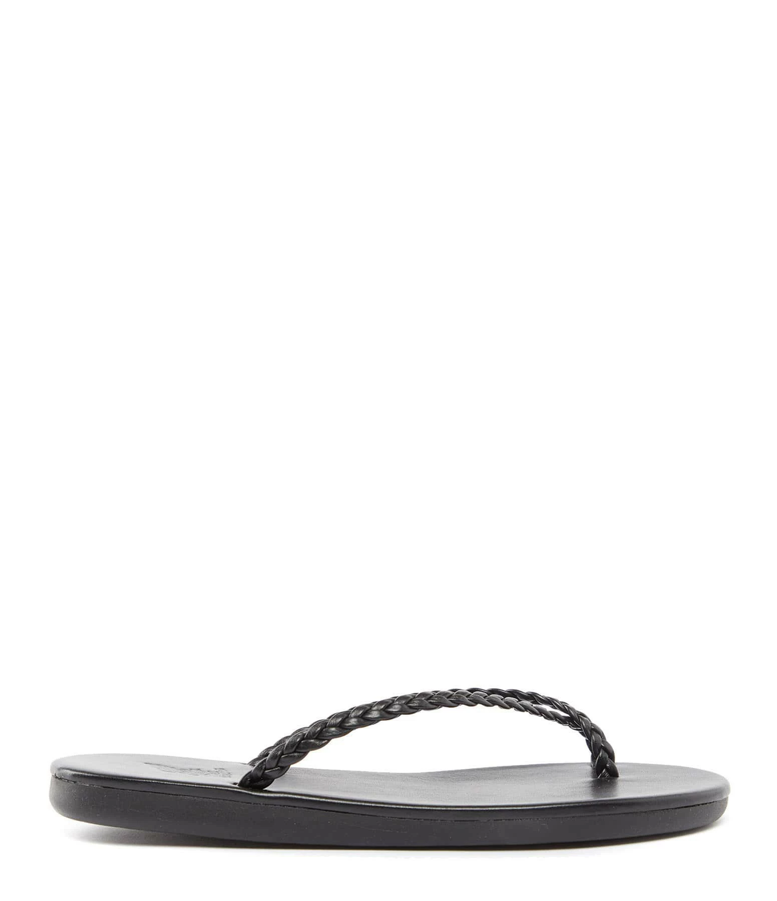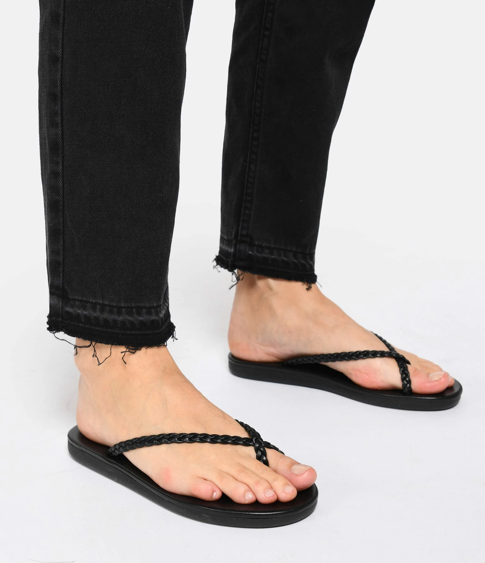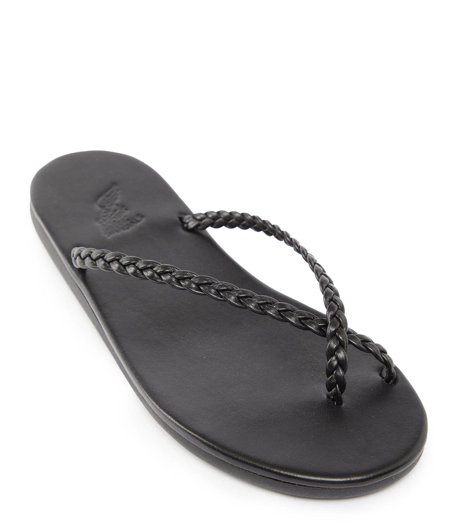 Sandales en cuir noir. Deux brides tressées. Les brides ne sont pas réglables.