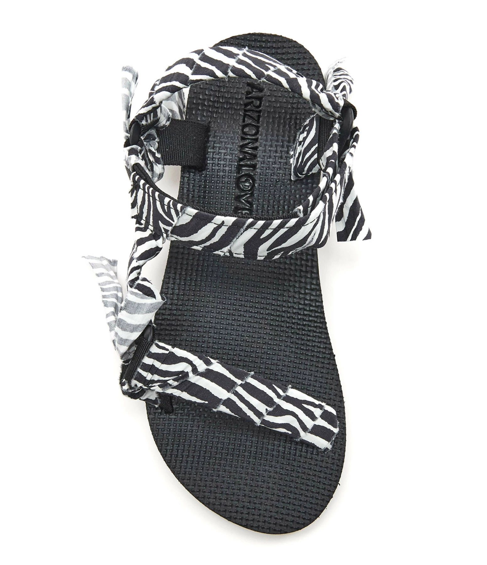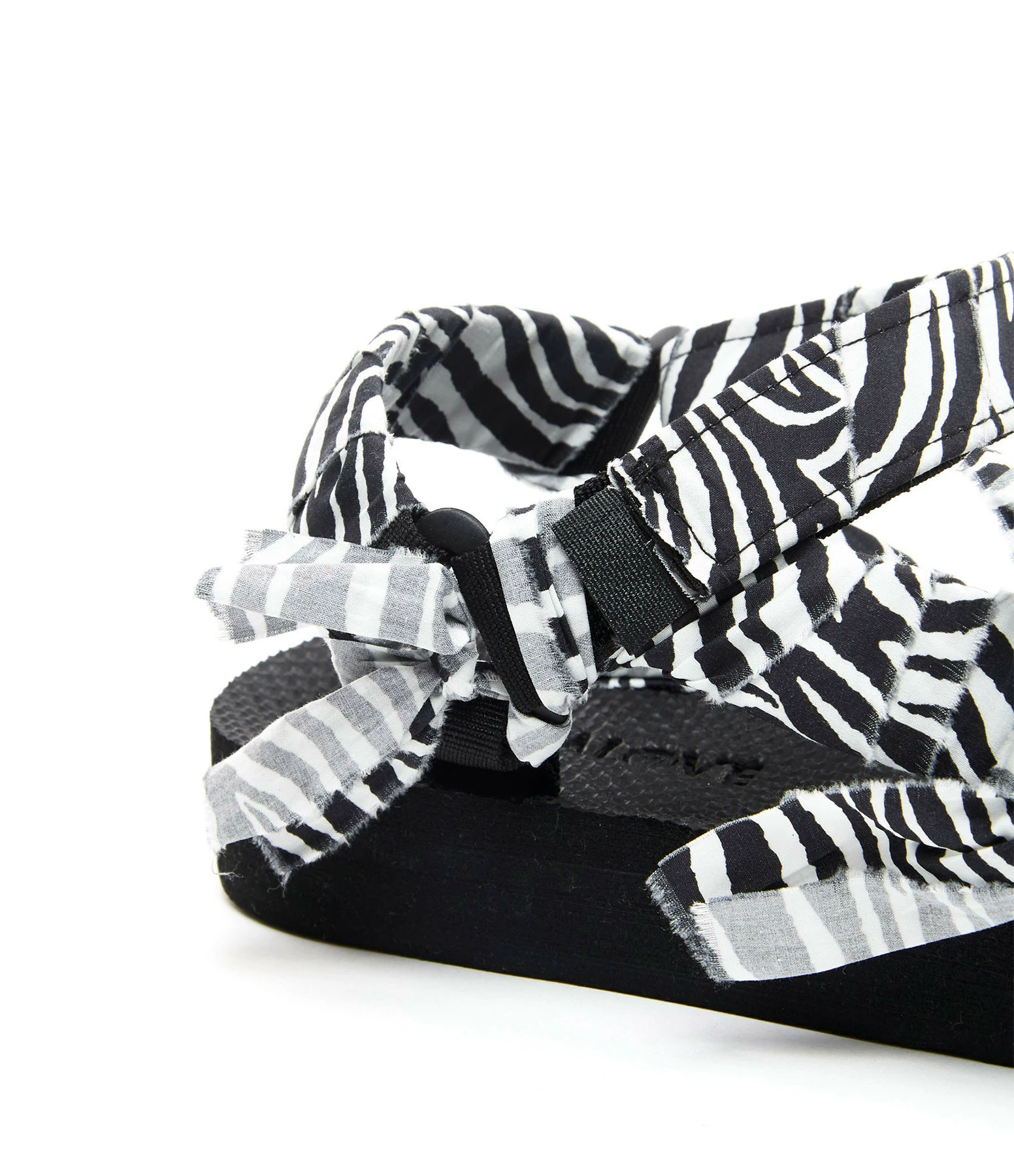 Sandales à brides réglable imprimé zèbre et bandana noir pour enfant. Fermeture par scratch.