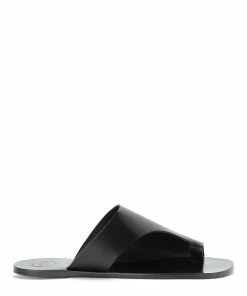 Sandales en cuir végétal, marge bride avec passant pour le pouce. Ouvertes à l’arrière. Semelles en cuir.