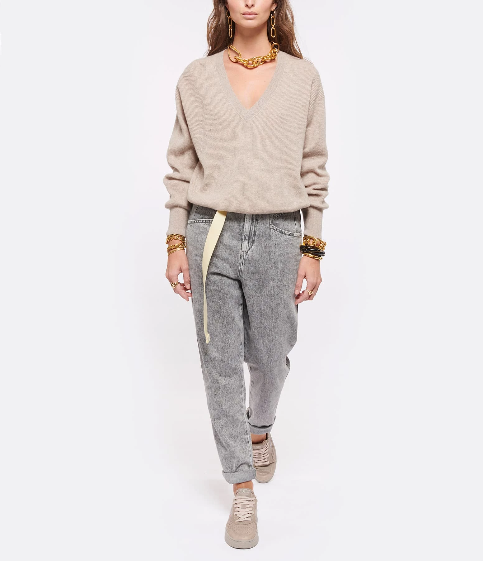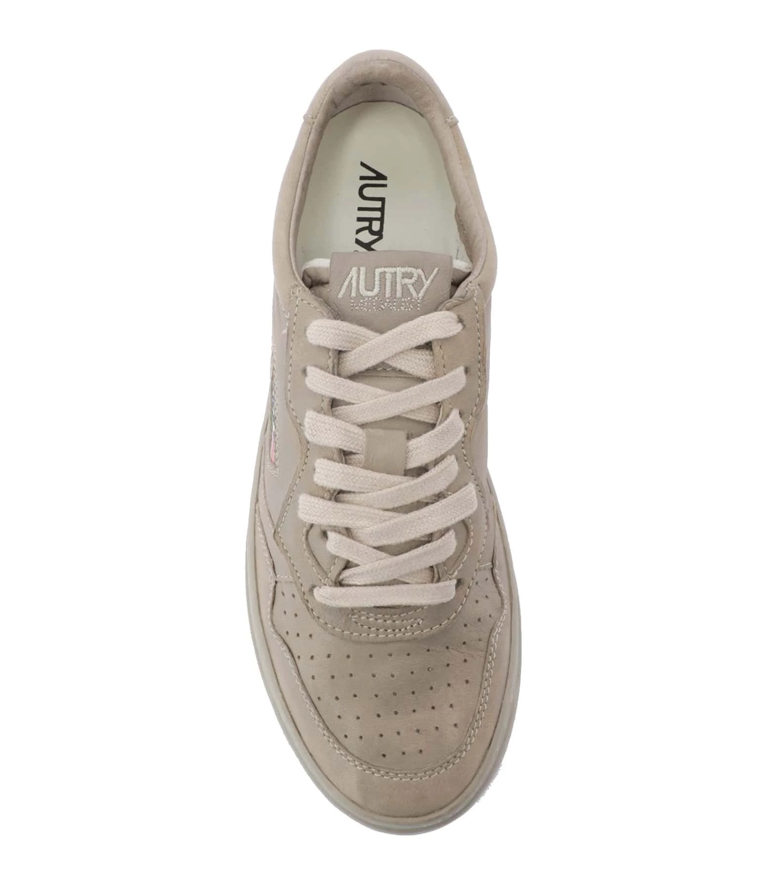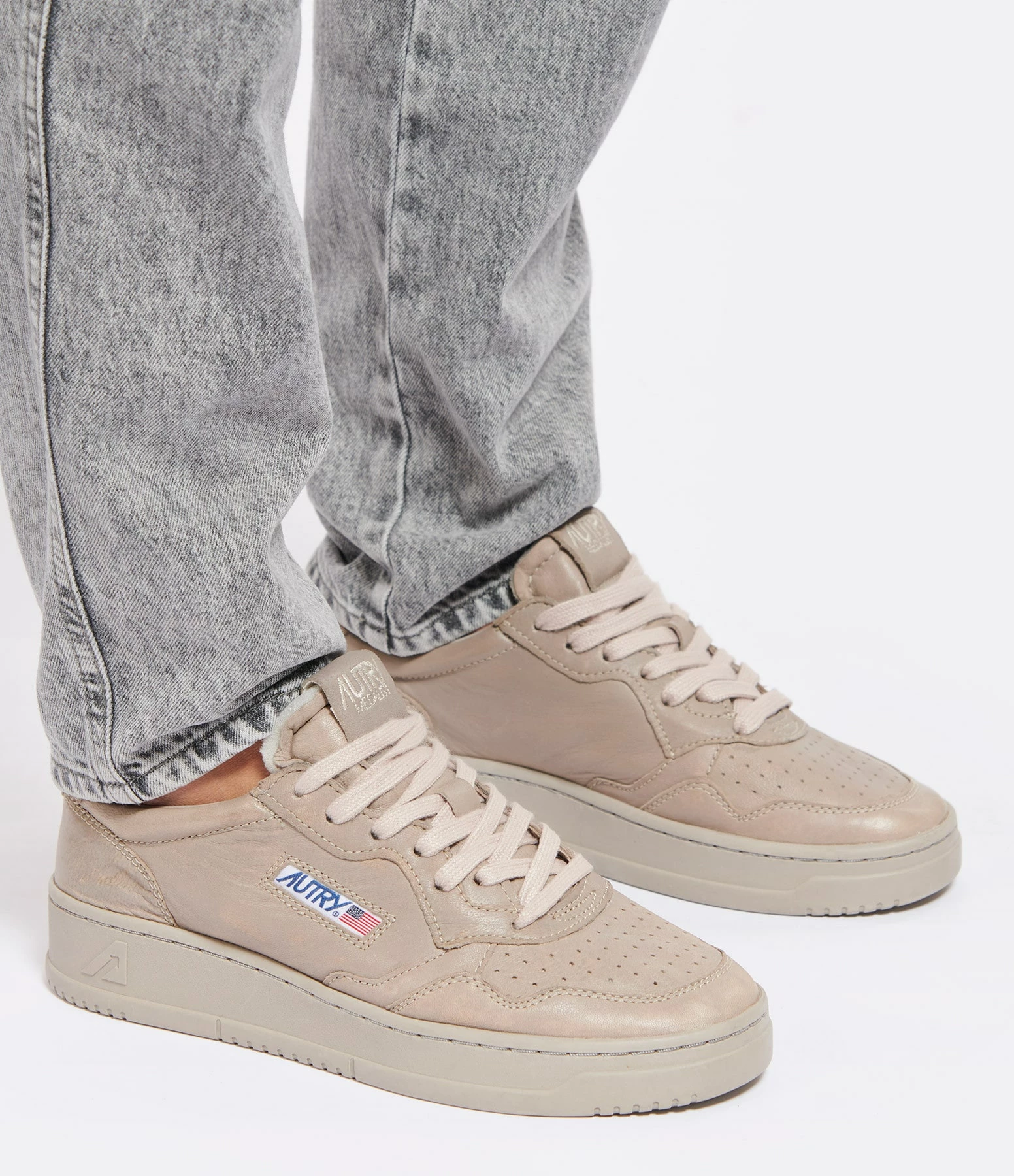 Baskets basses en cuir lisse taupe. Logo brodé sur le côté extérieur.