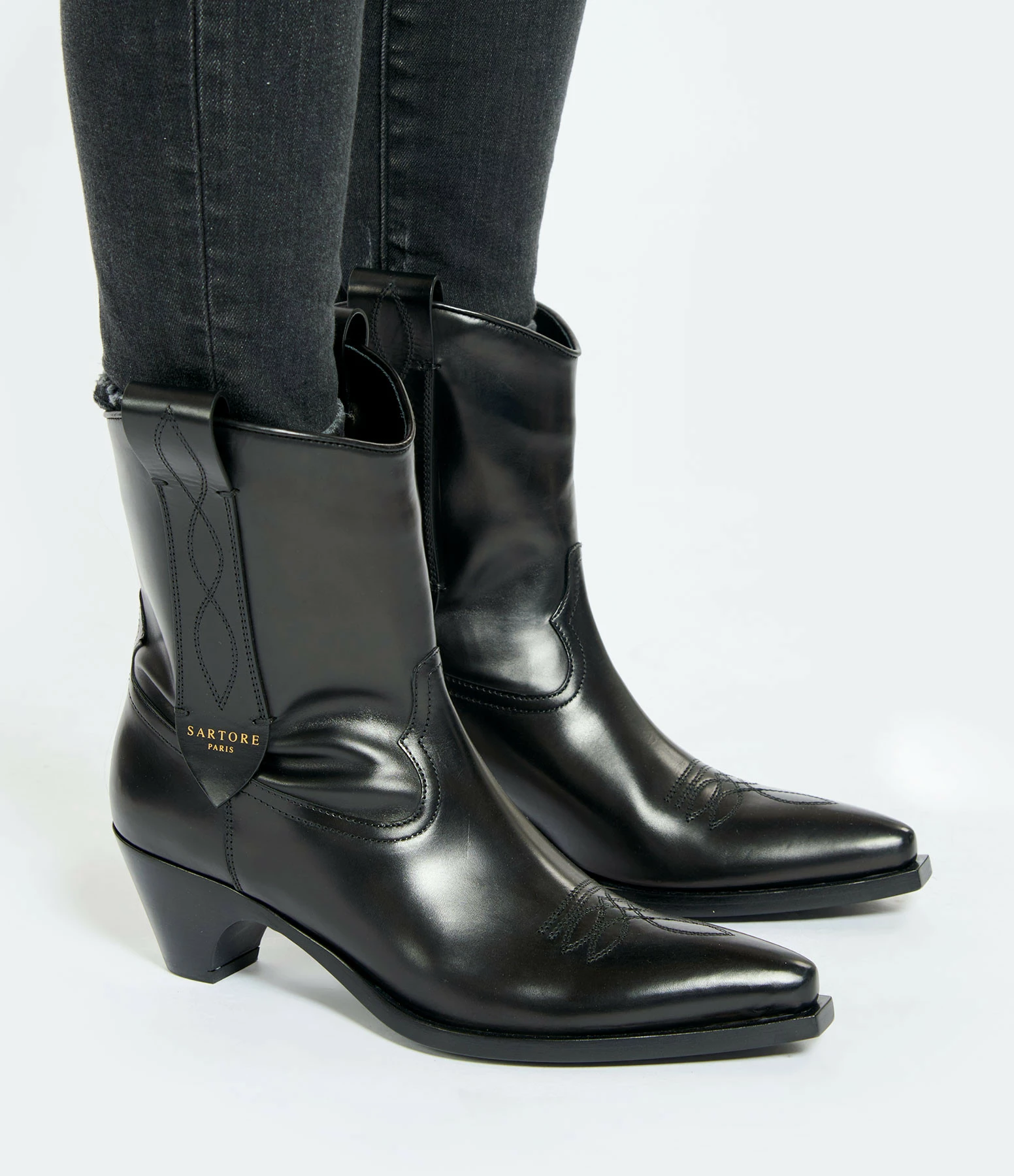 Bottines Justine Cuir Noir, Collaboration Made In Tomboy X Sartore
