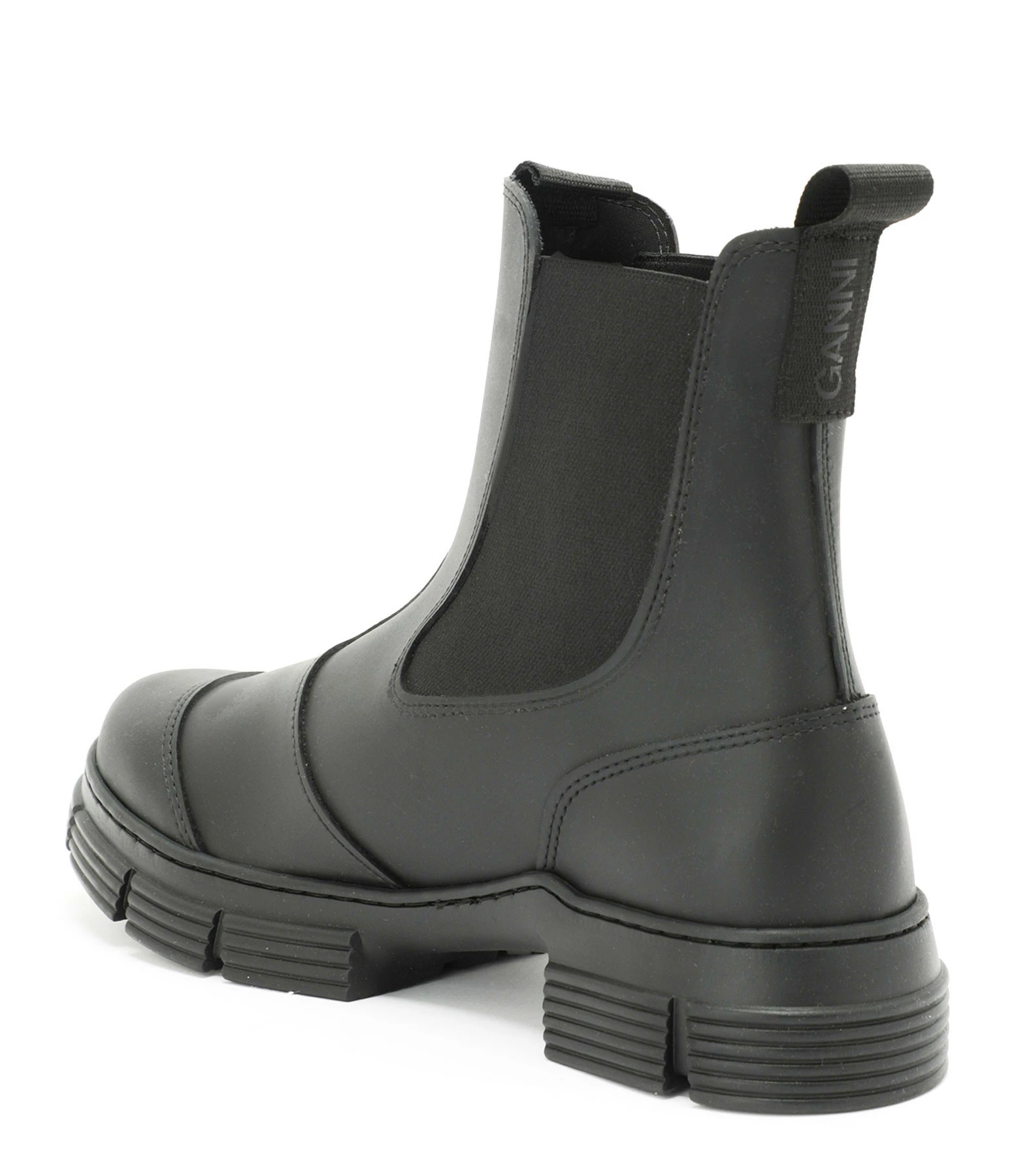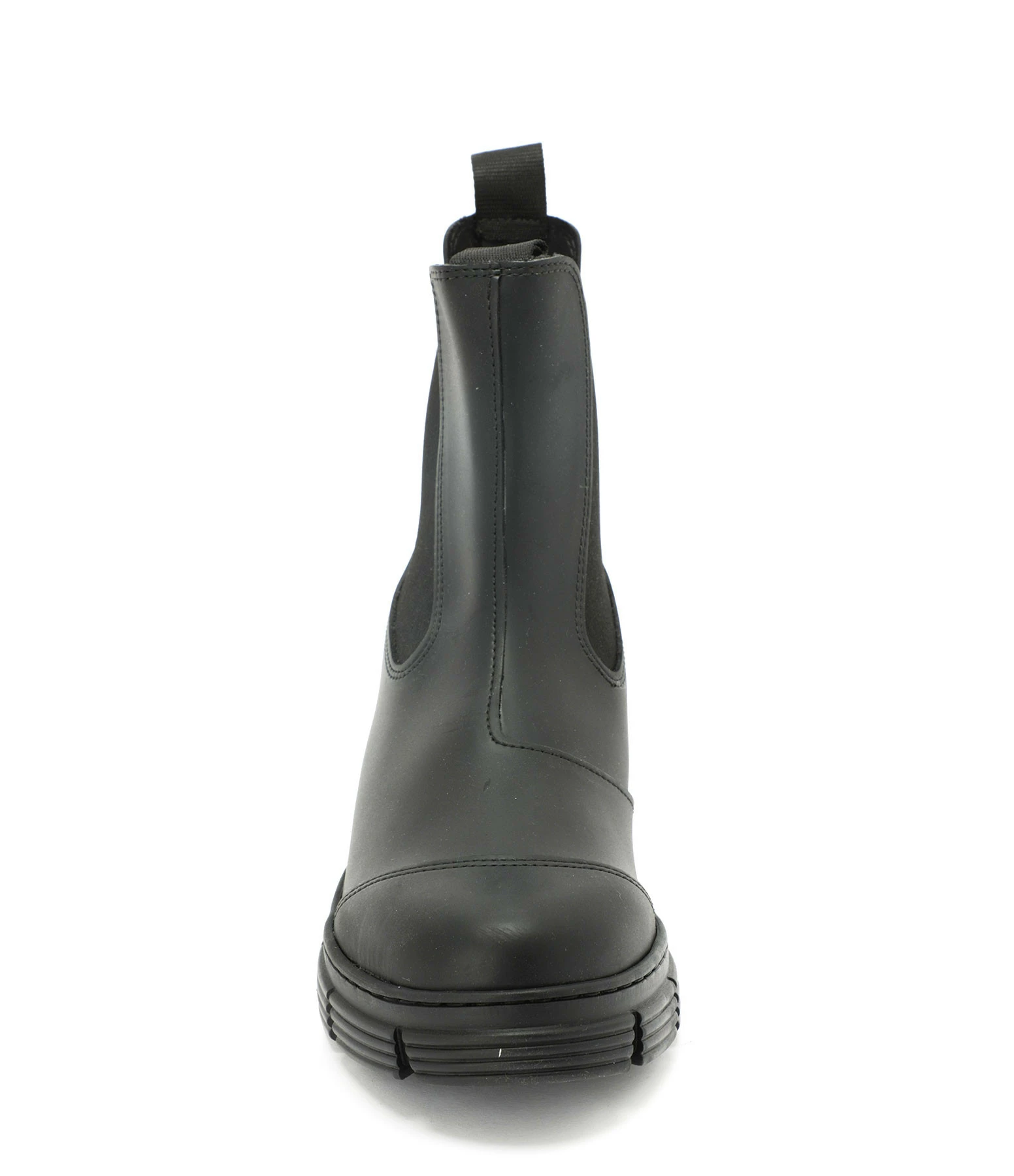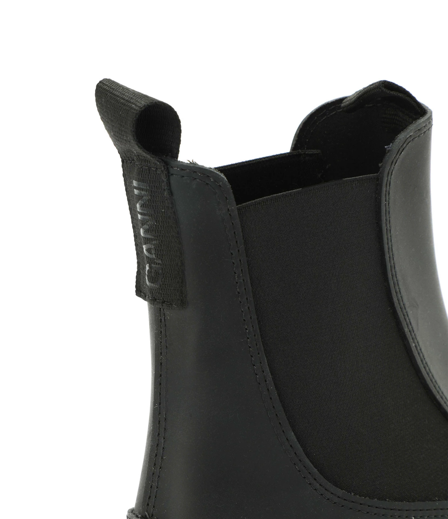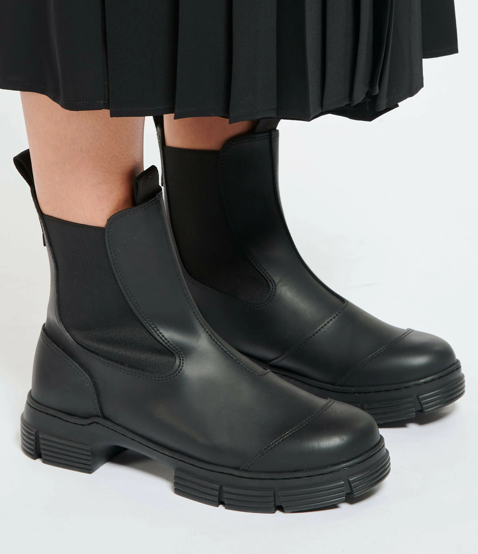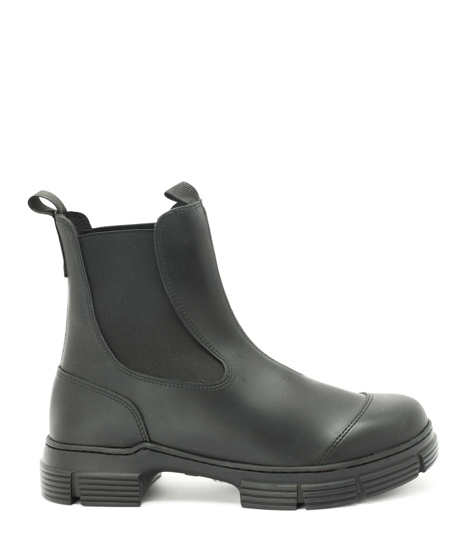 Bottines chelsea en cuir. Semelle en caoutchouc. Élastiquée au niveau de la cheville. Languette à l’avant et à l’arrière.
