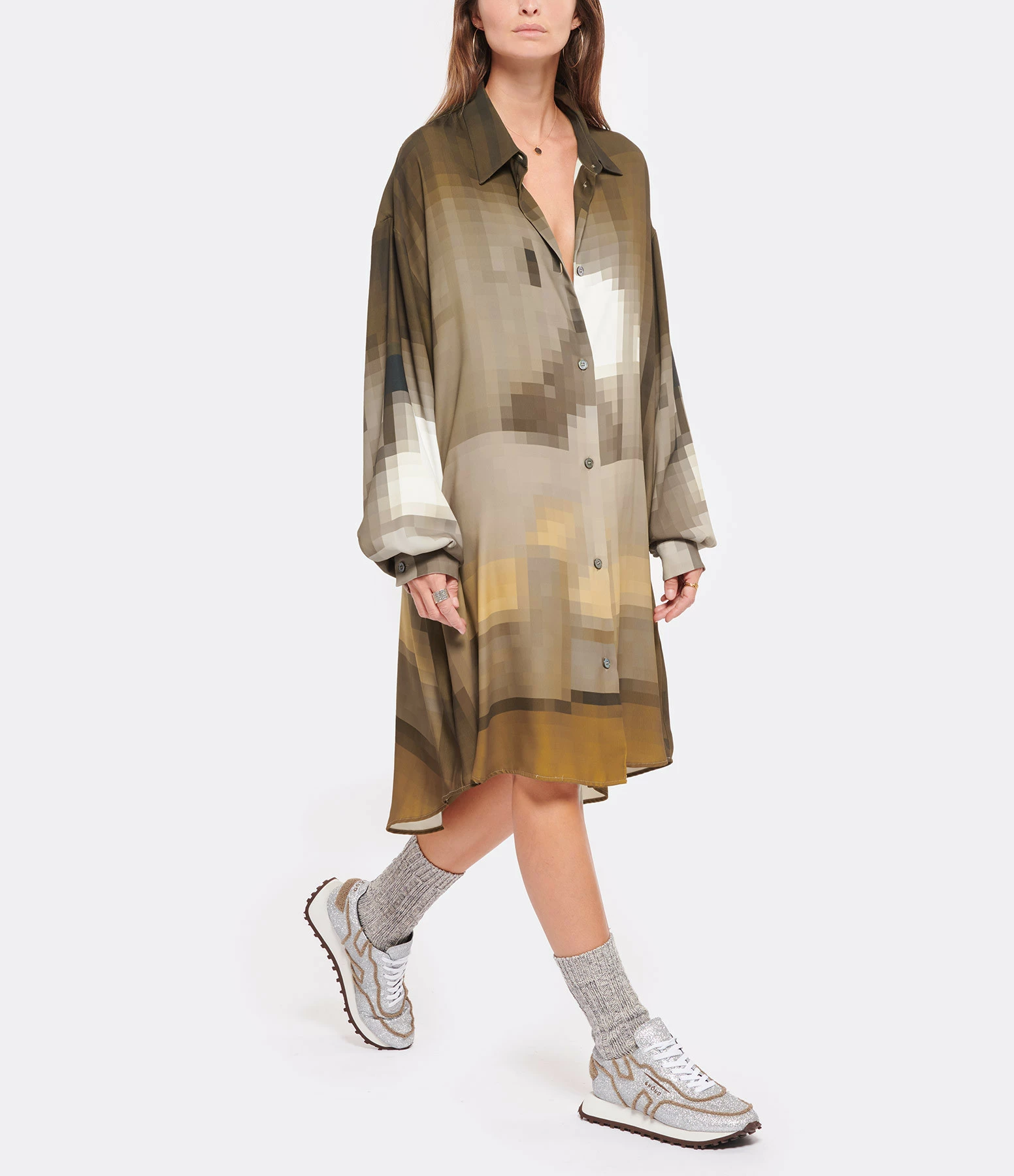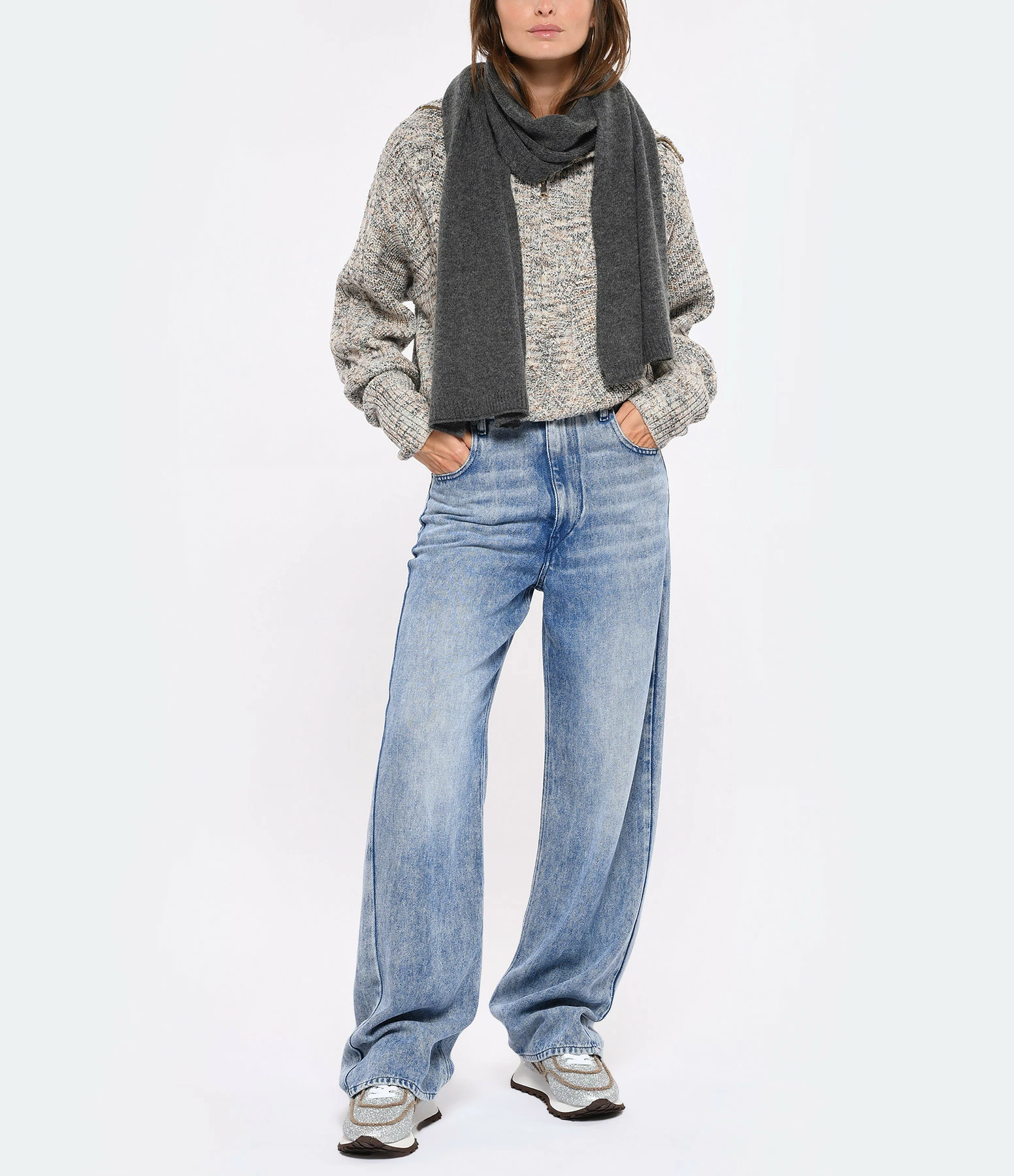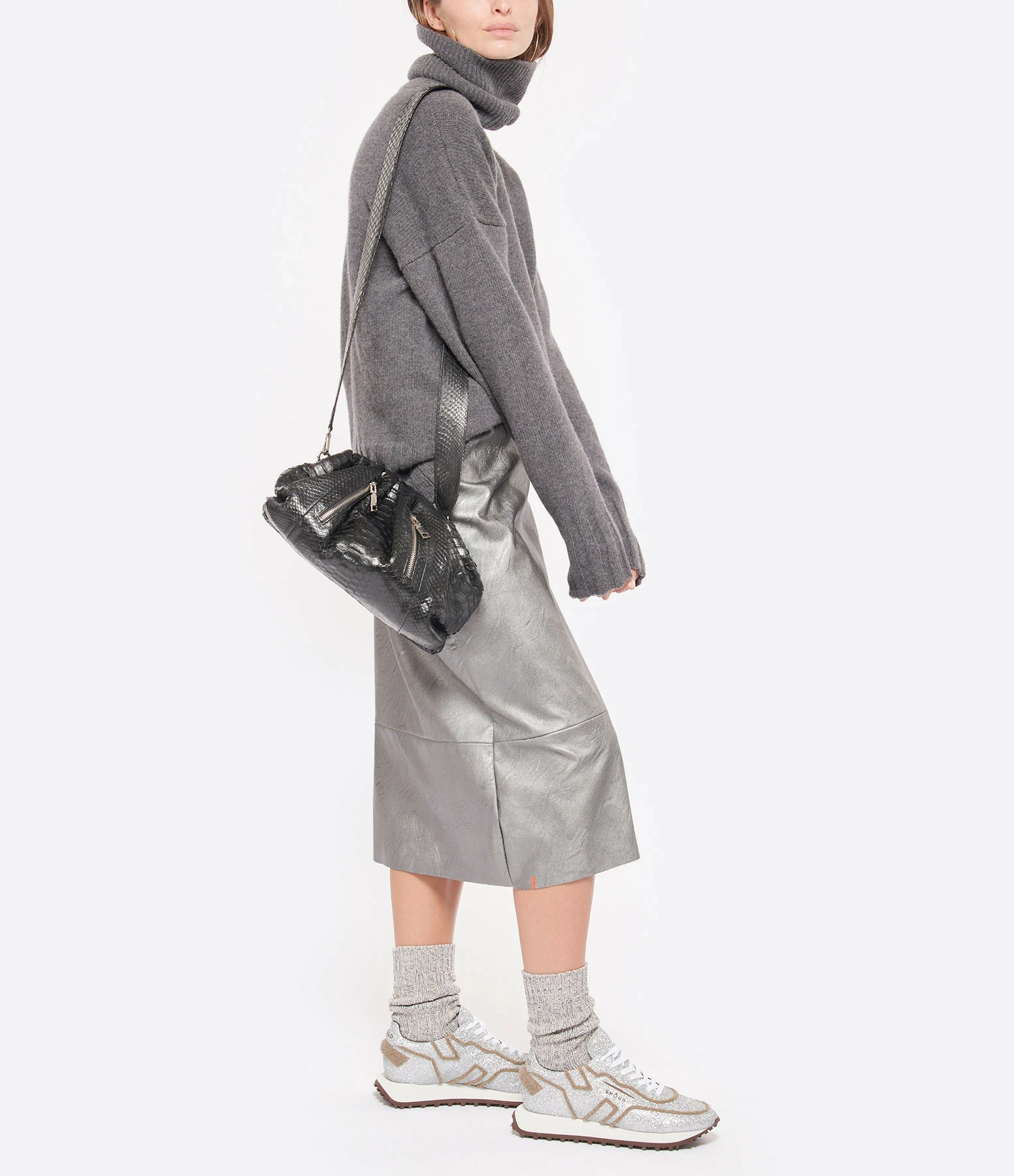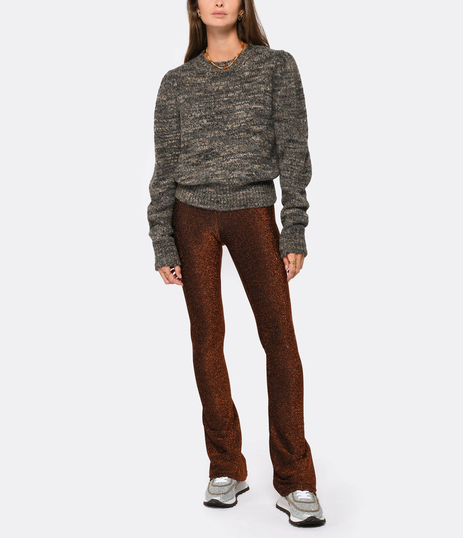 Baskets running pailletées argentées. Détails et empiècement en maille bouclette marron. Semelle en caoutchouc blanc.