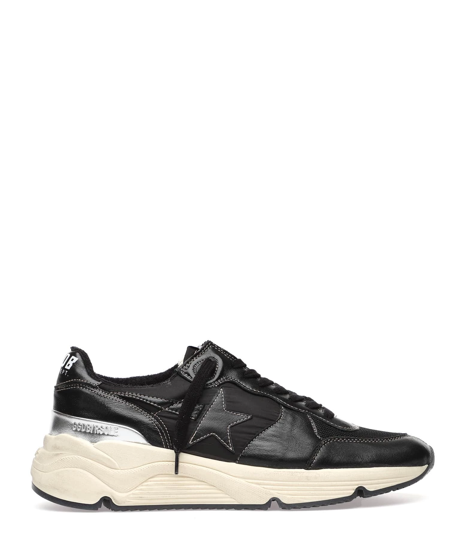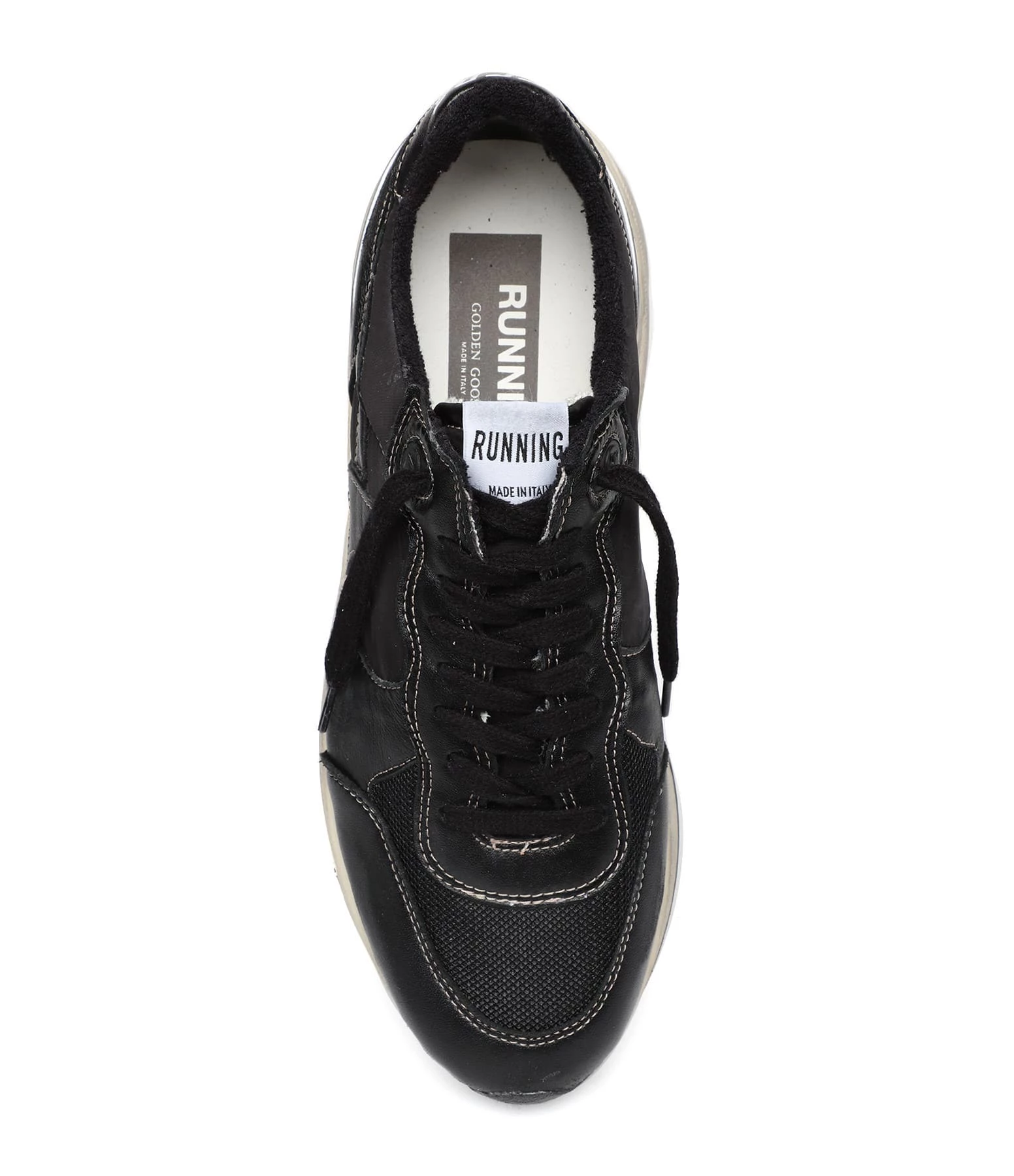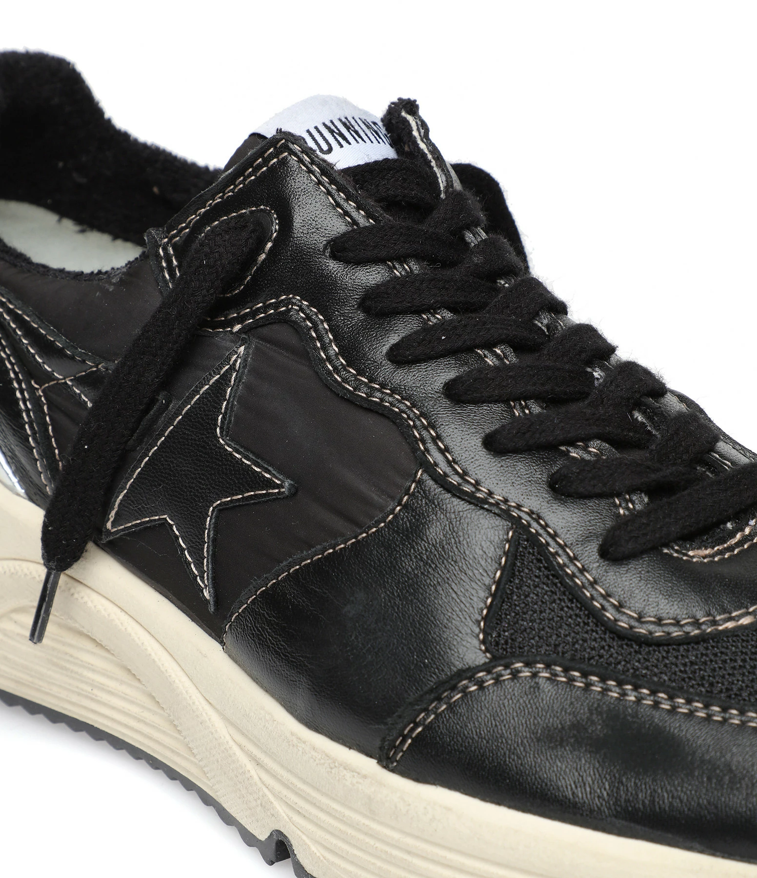 Baskets running en cuir multi-matière noir. Empiècement étoile noir et renfort talon en cuir lisse noir. Lacets noirs. Intérieur en maille bouclette et cuir. Inscription “GGDB/RSOLE.” sur le côté.