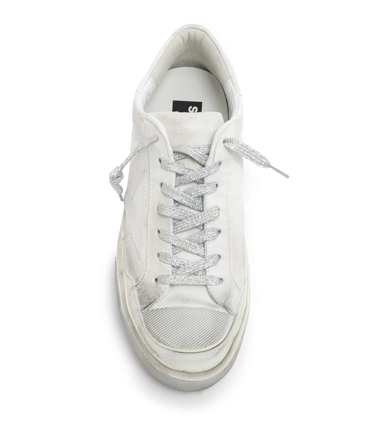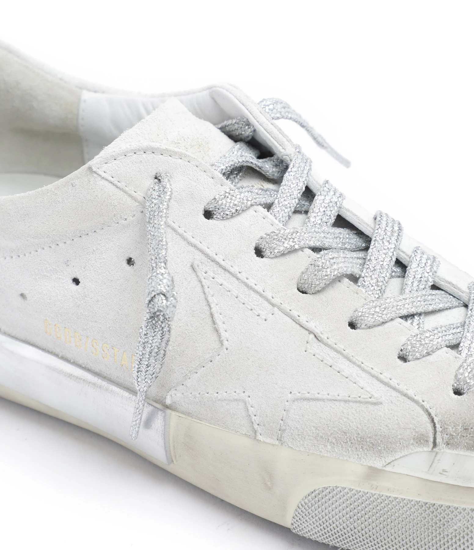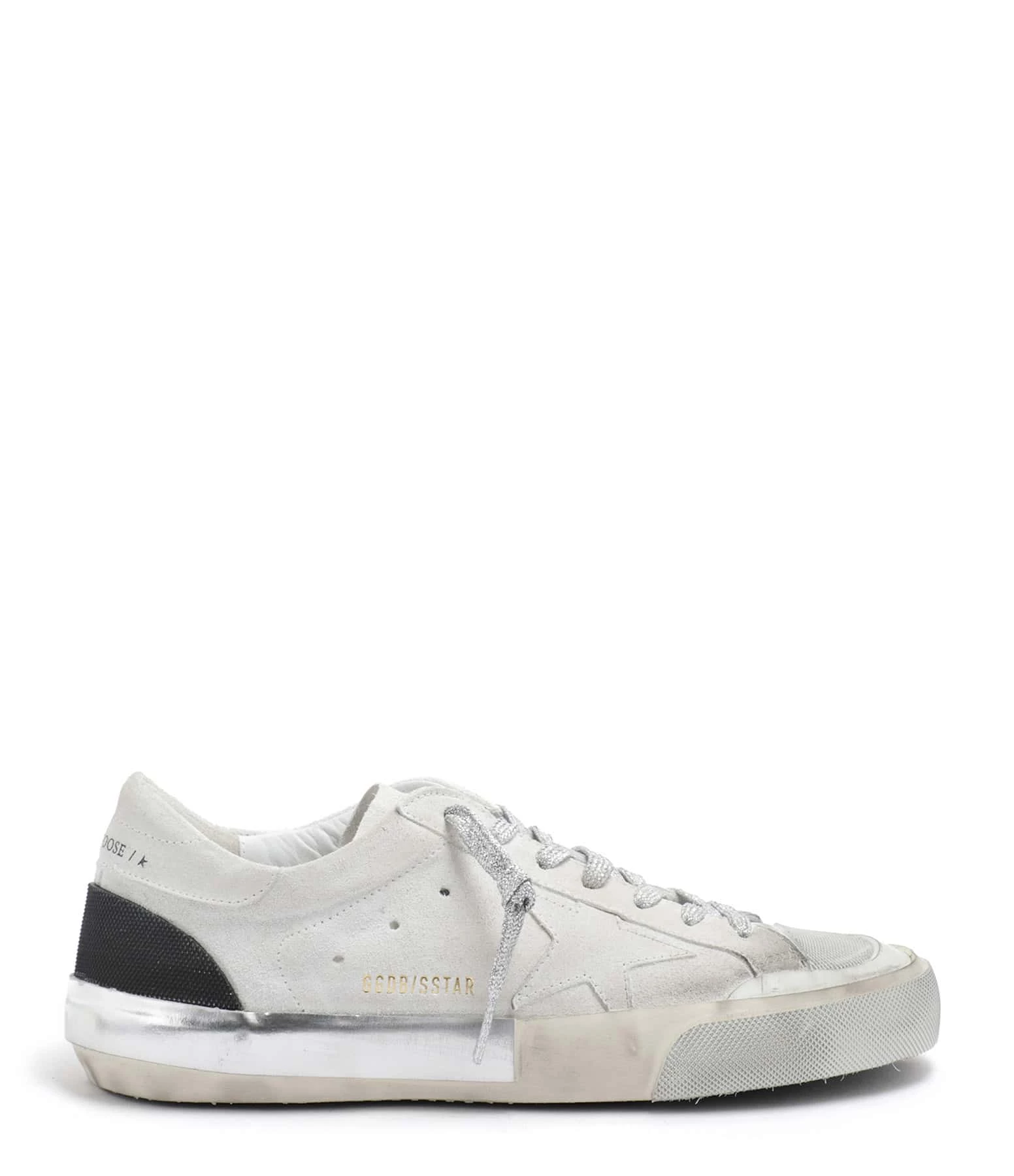 Baskets basses pour homme en cuir suédé gris. Empiècement étoile et renfort talon en cuir suédé. Lacets gris argentés. Inscription “GGDB/SSTAR” sur le côté extérieur. Intérieur en maille bouclette et cuir.