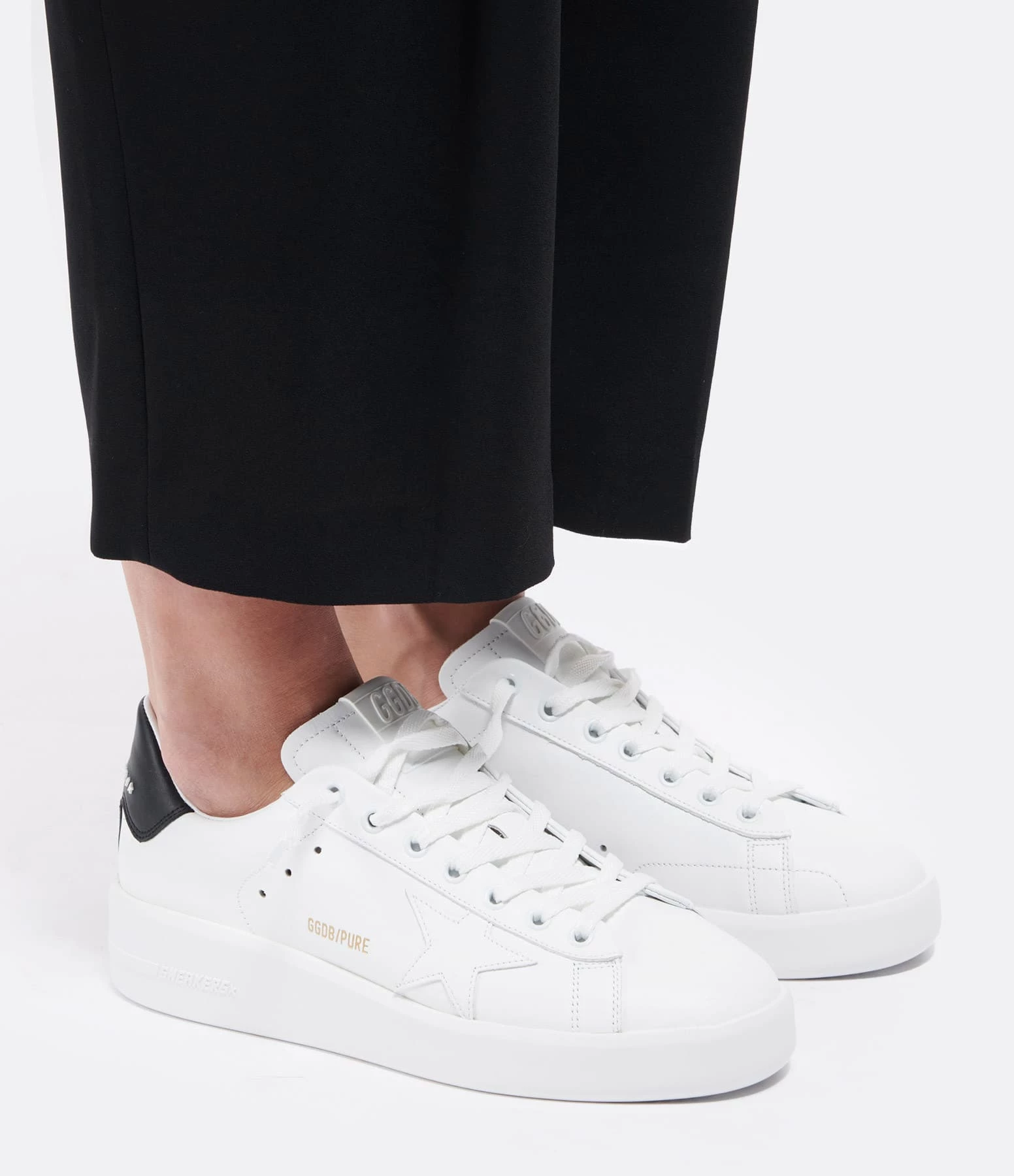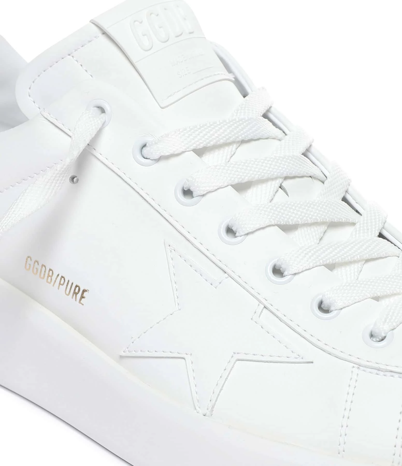 Baskets basses en cuir lisse blanc. Empiècement étoile en cuir lisse blanc. Renfort talon en cuir lisse noir. Inscription “GGDB/PURE” dorée sur le côté extérieur de la chaussure droite. Intérieur en cuir.