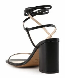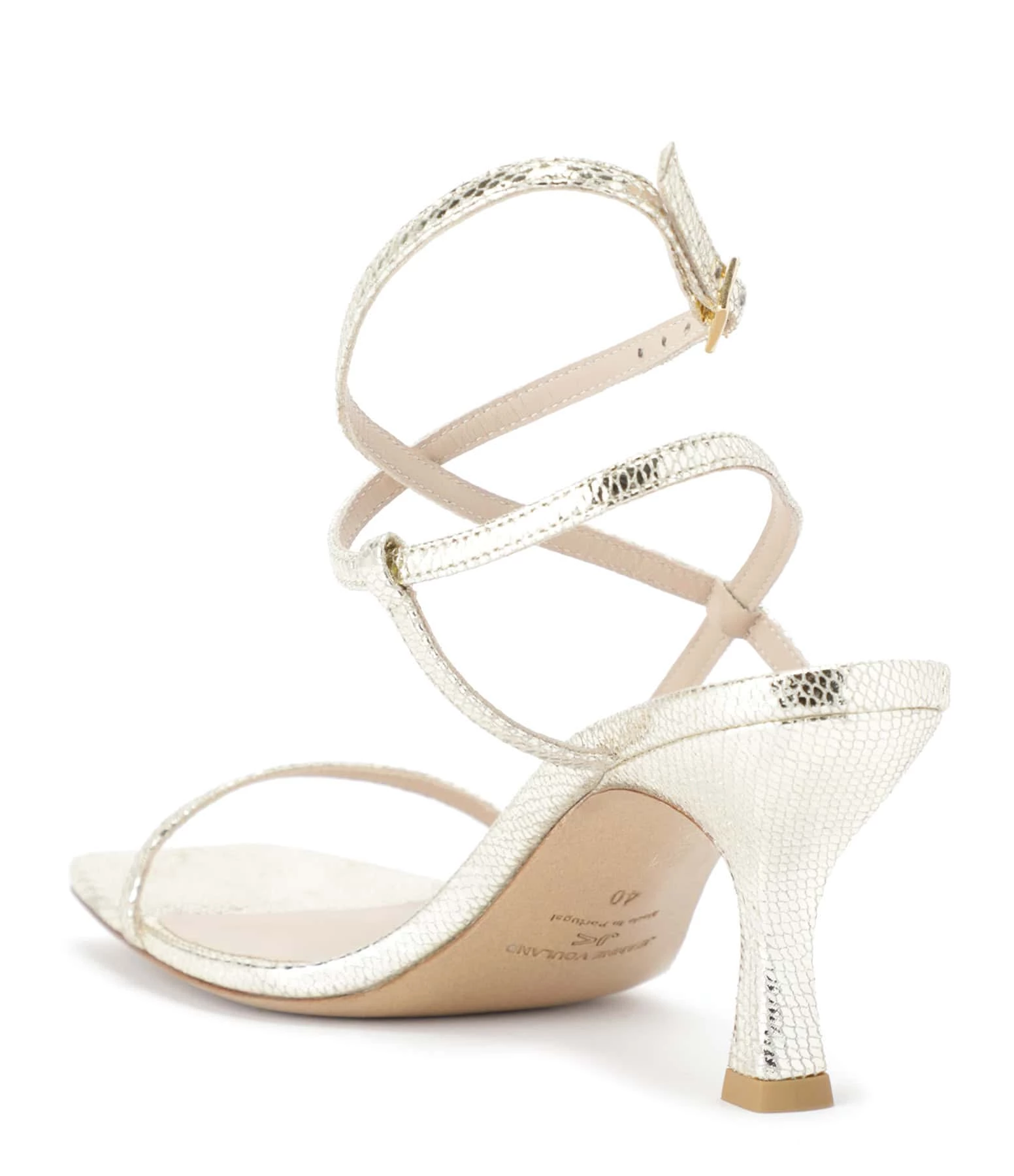 Sandales en cuir doré à brides. Bride réglable autour de la cheville. Talon biseauté.