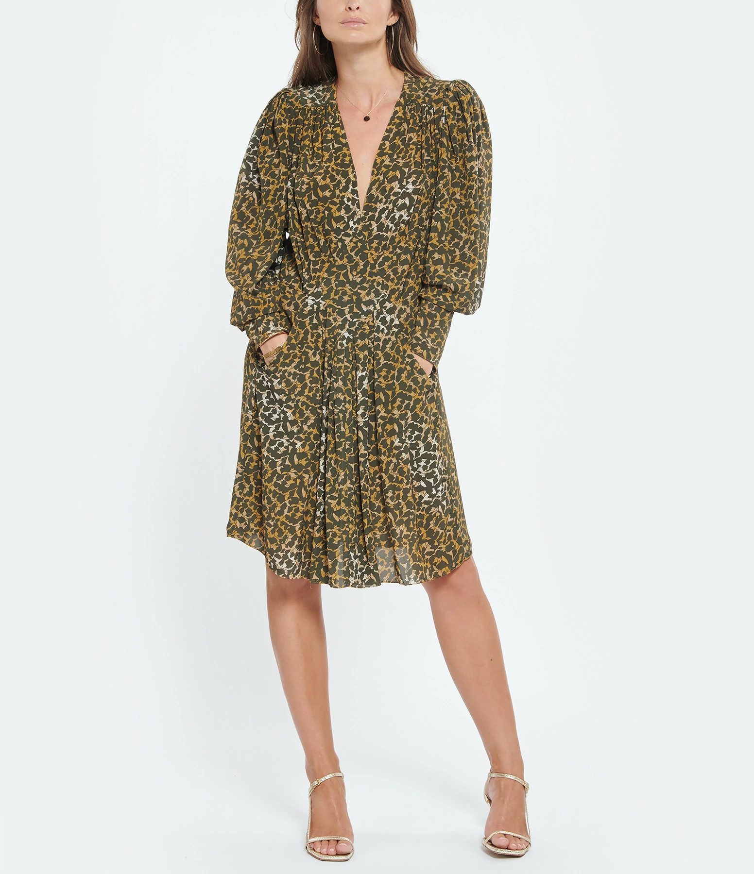Sandales en cuir doré à brides. Bride réglable autour de la cheville. Talon biseauté.