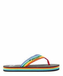 Tongs avec brides multicolores, broderie “HAWAI” et palmier. Semelle épaisse multicolore.