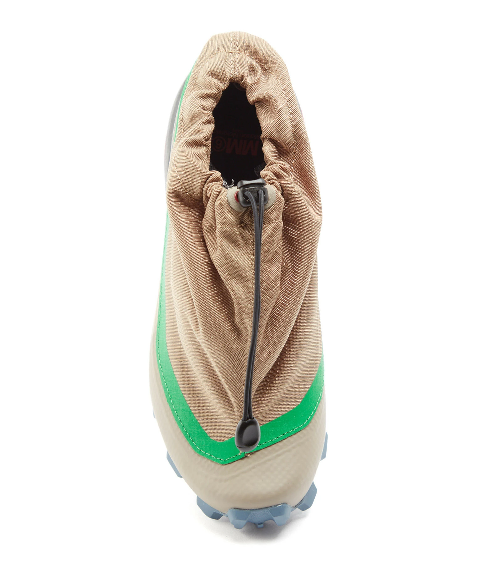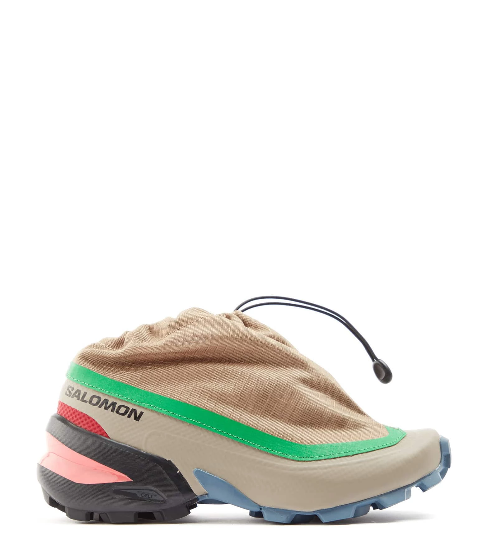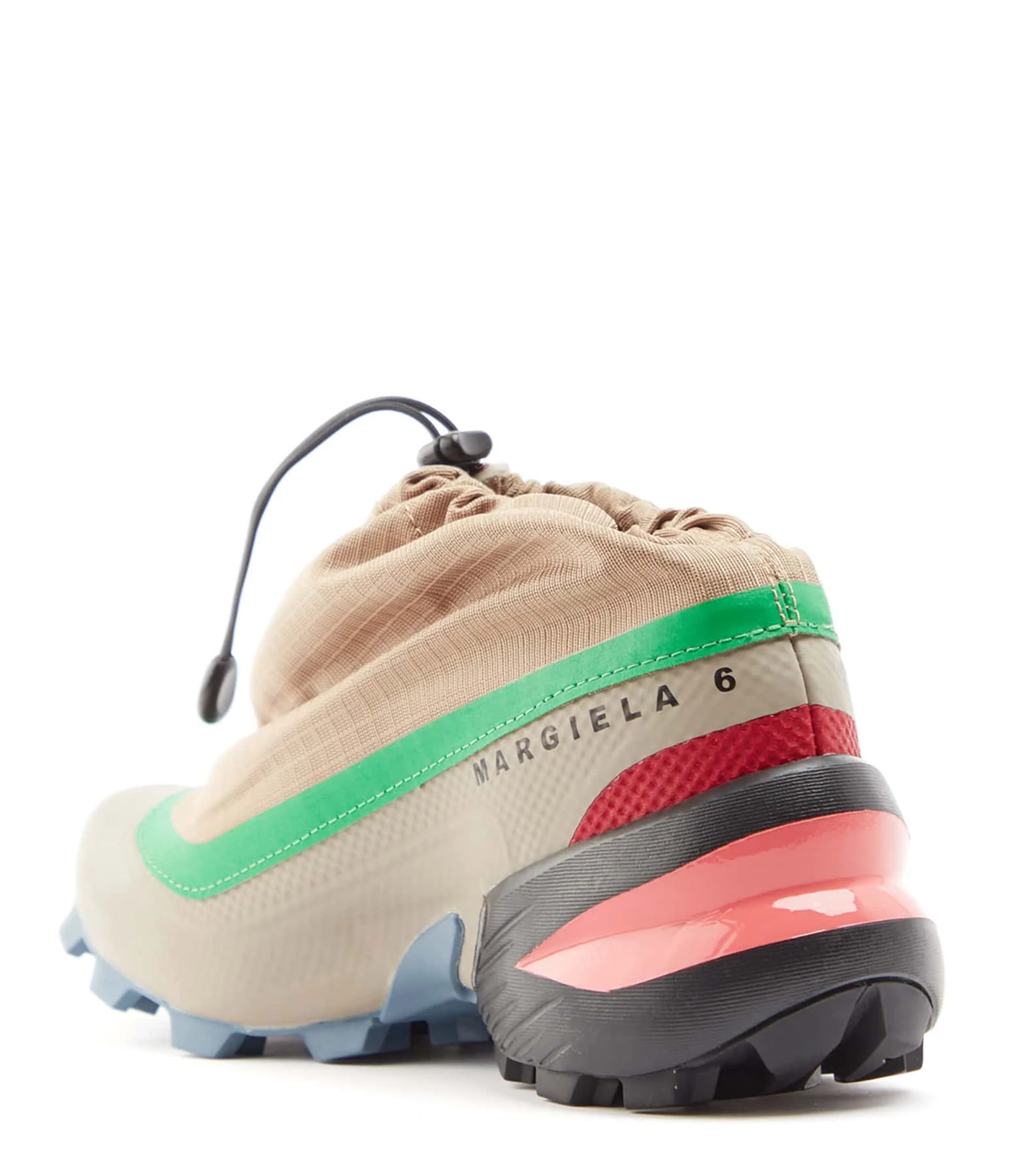 Baskets basses de trail running multi-matières multicolores. Guêtre intégrée ajustable par codon de serrage. Semelle à crampons. Semelle arrière en noir et rose. Languette élastiquée. Bout arrondi. Tige arrière estampillée Salomon et Margiela 6 en noir contrastant.