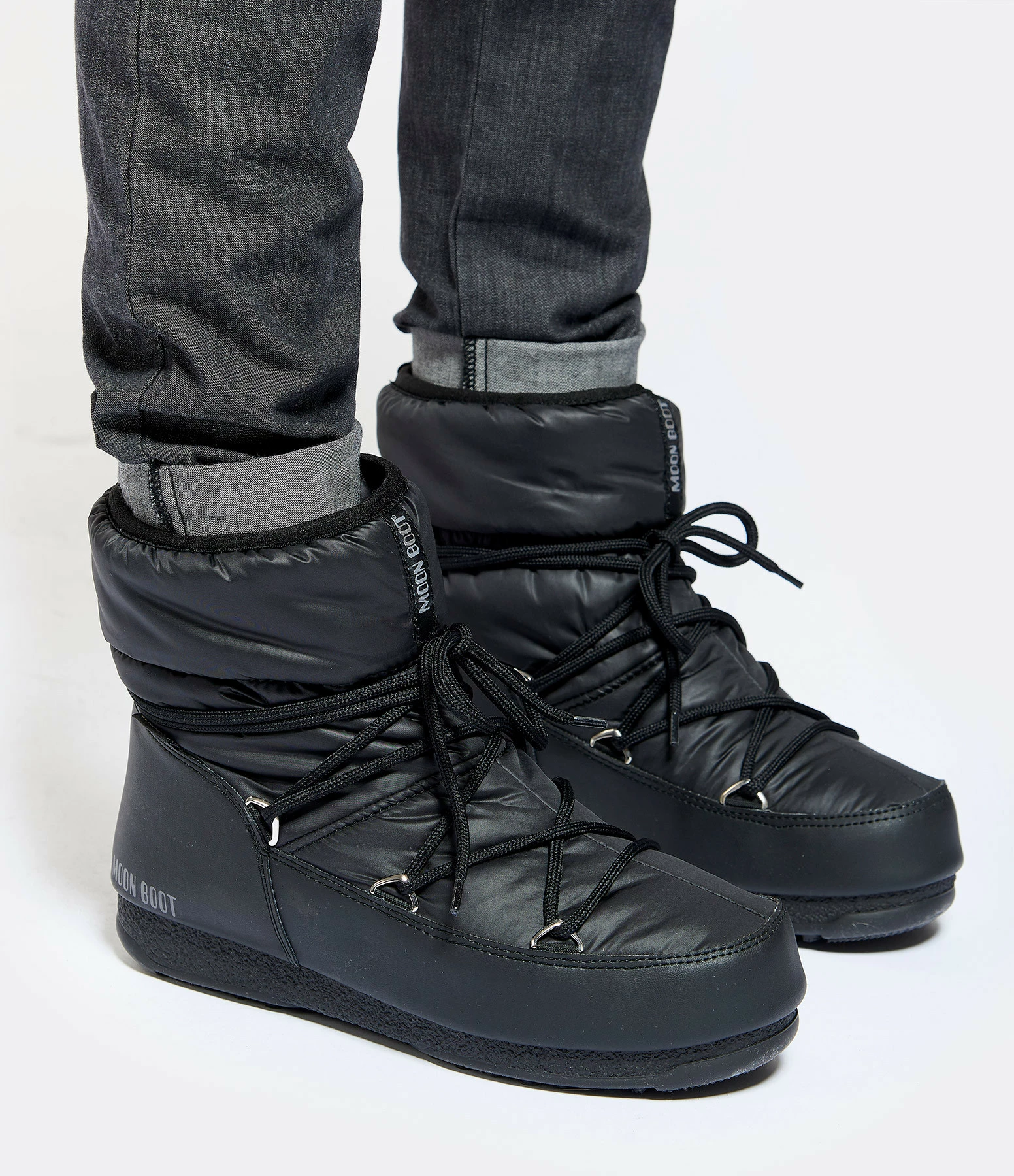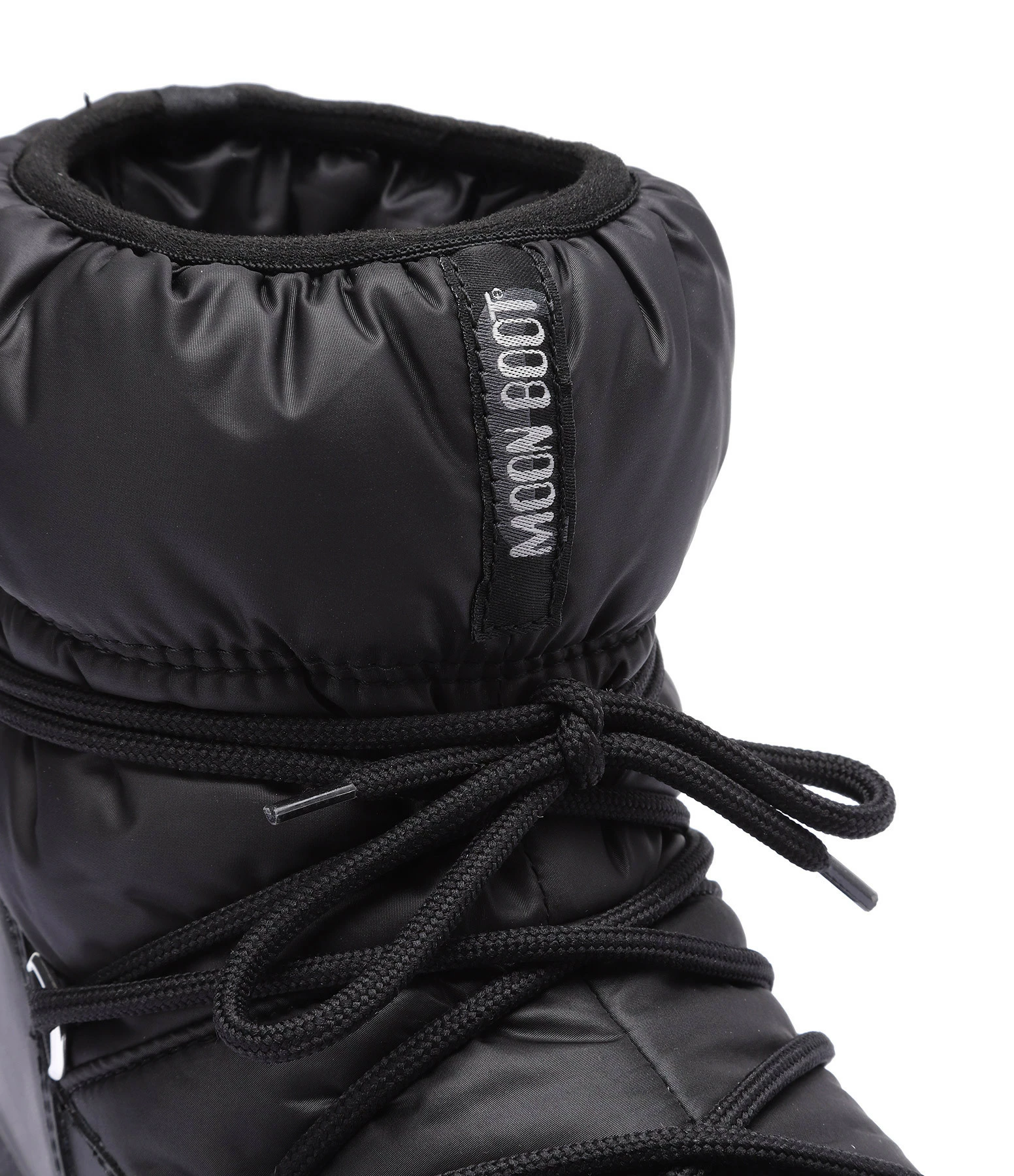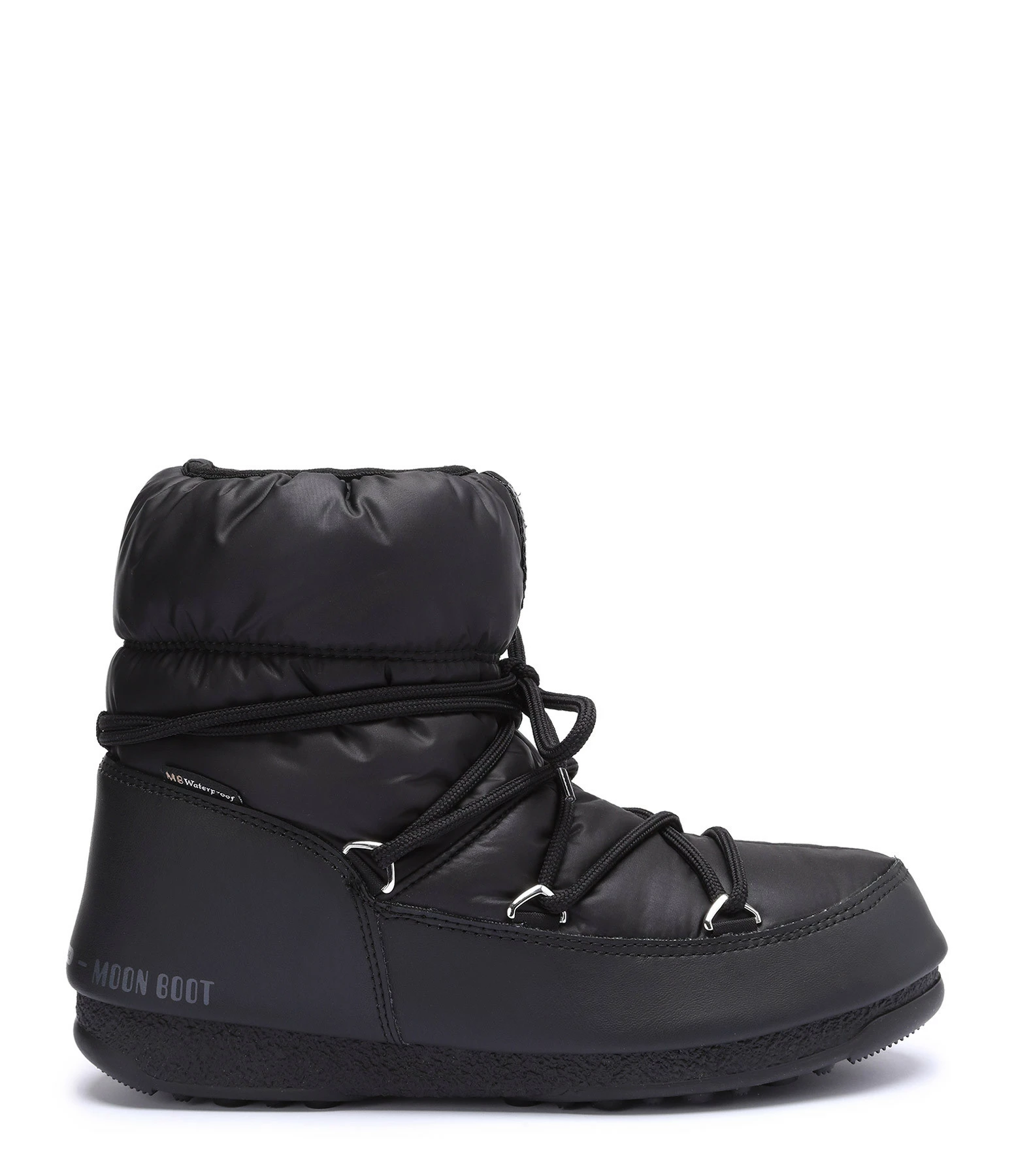 Bottines basses pour femme en nylon noir. Imperméables grâce à une membrane waterproof. Élastiquées en haut de la cheville pour empêcher l’infiltration du froid et de la neige. Semelles adhérentes. Inscription de la marque à l’arrière au niveau du talon. Fermeture par lacets. Doublées.