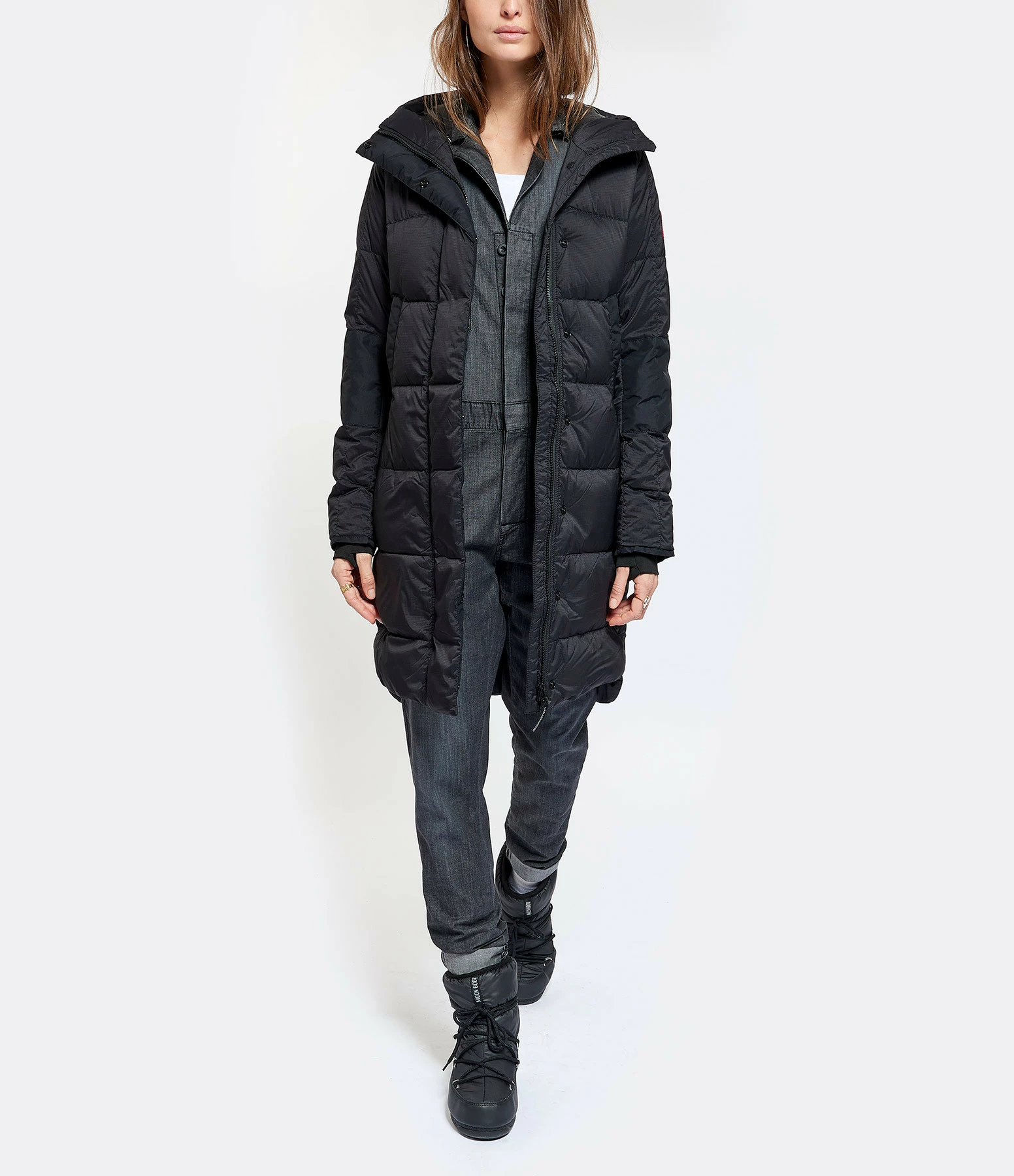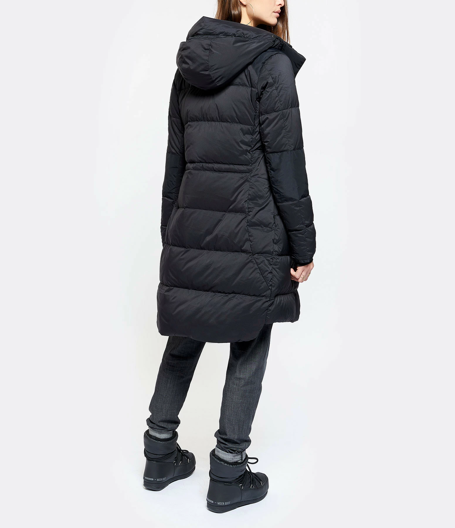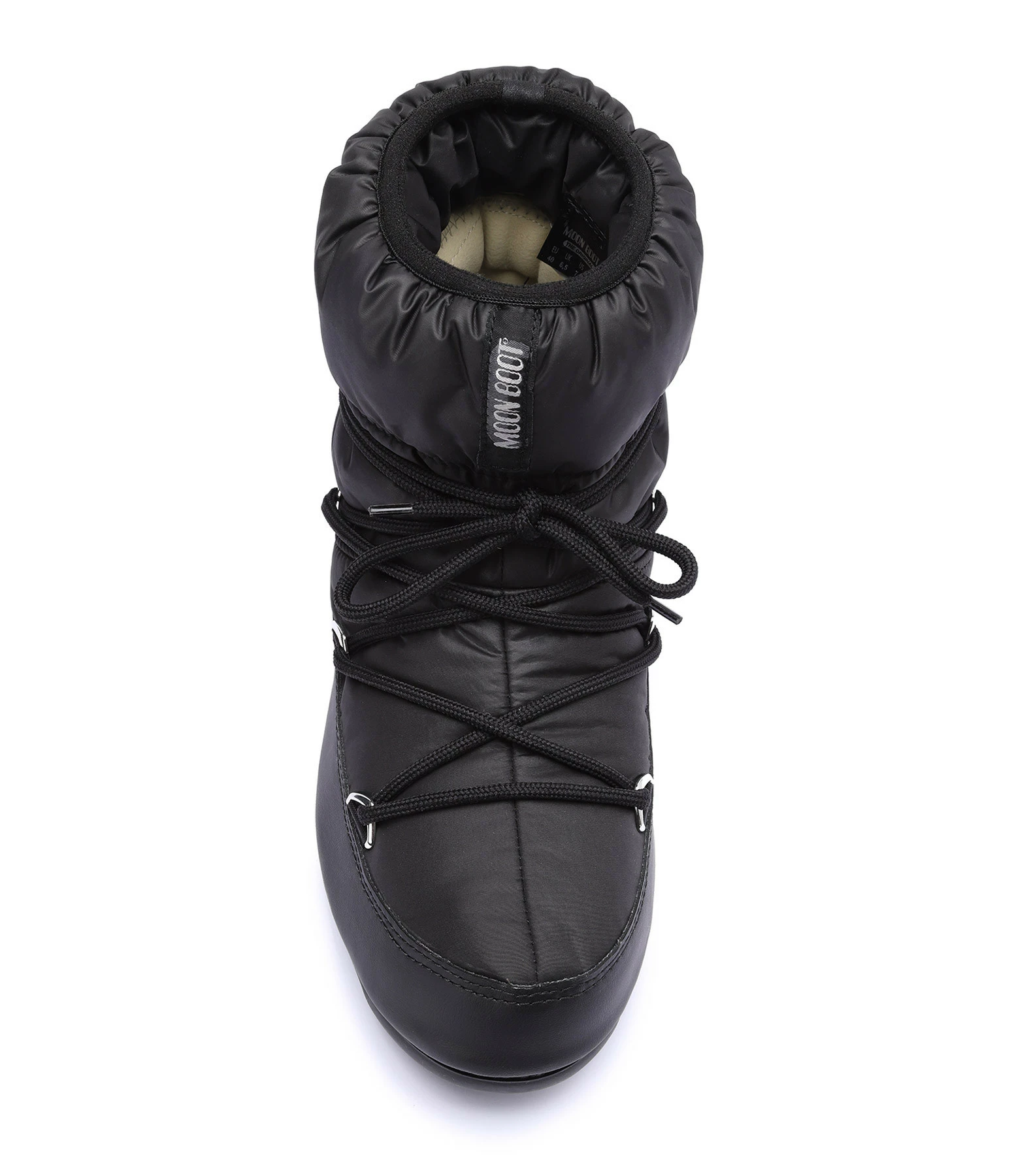 Bottines basses pour femme en nylon noir. Imperméables grâce à une membrane waterproof. Élastiquées en haut de la cheville pour empêcher l’infiltration du froid et de la neige. Semelles adhérentes. Inscription de la marque à l’arrière au niveau du talon. Fermeture par lacets. Doublées.
