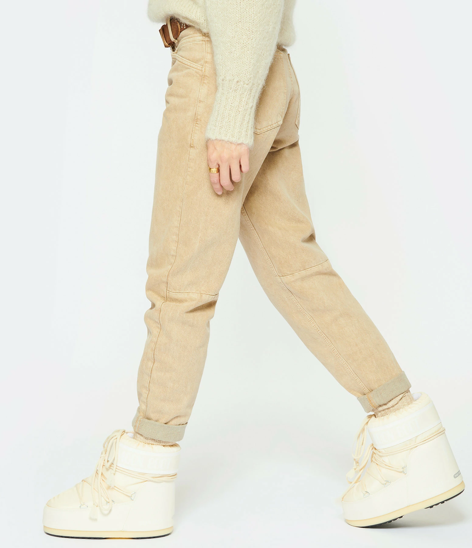 Bottines basses d’après-ski ambidextre en nylon beige crème réhaussées d’empiècements en PVC beige clair avec le logo imprimé en blanc. Fermeture par lacets tubulaires croisés beige crème. Cordon de serrage en haut de la cheville pour une meilleure isolation. Semelles intermédiaires légères en thermoplastique. Semelles extérieures flexibles en caoutchouc avec ventouses pour une meilleure adhérence au sol. Doublées en mousse.