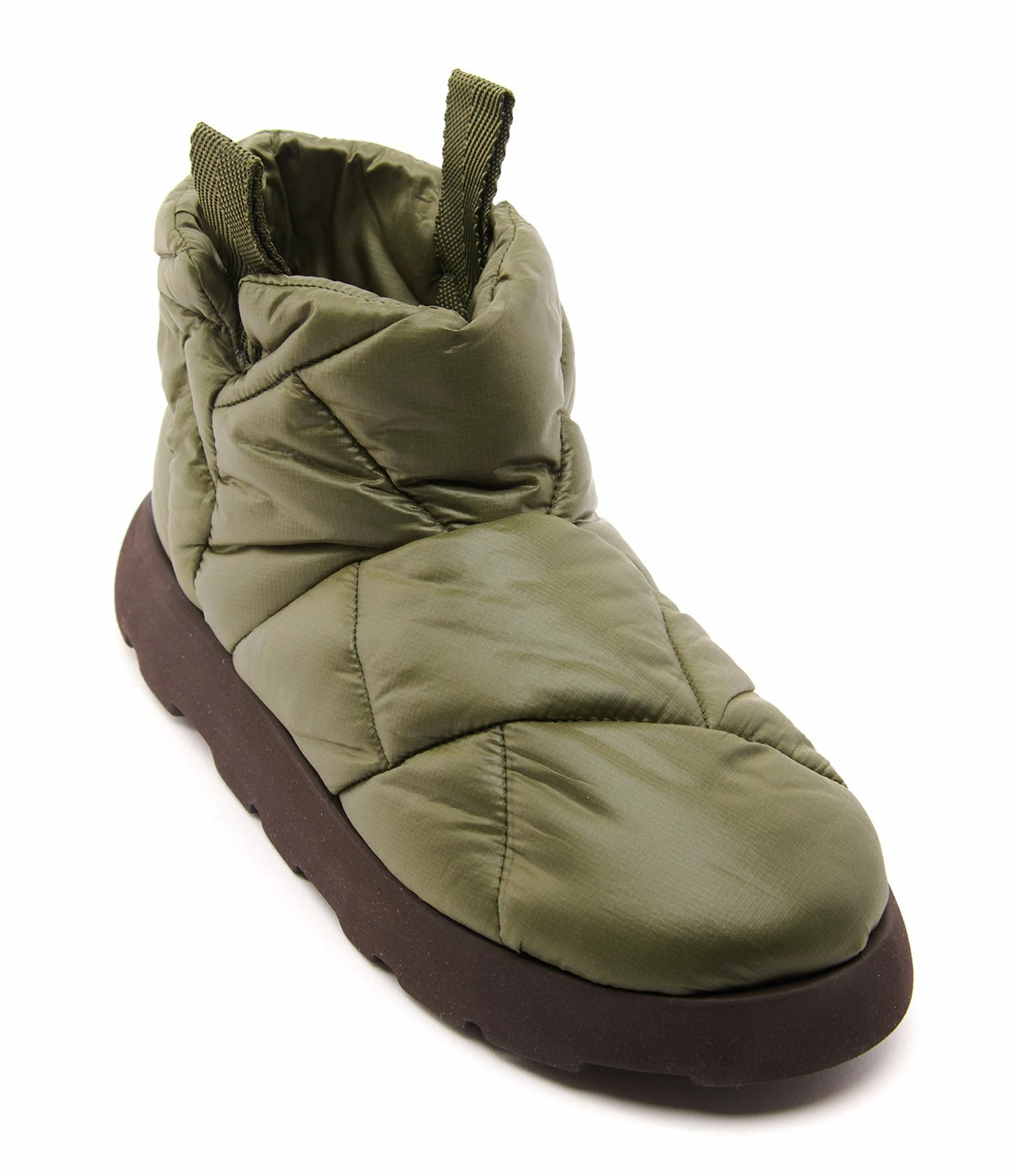 Bottines basses pour femme en polyester isolant vert. Semelles crantées.