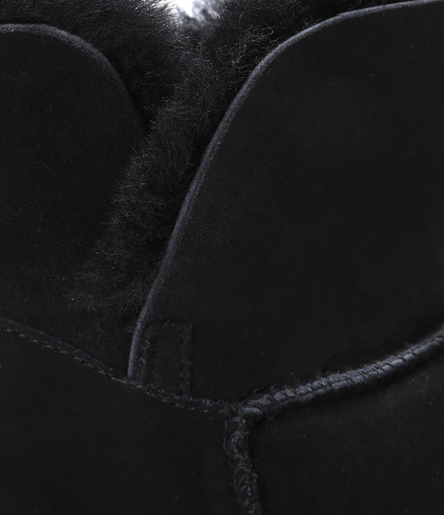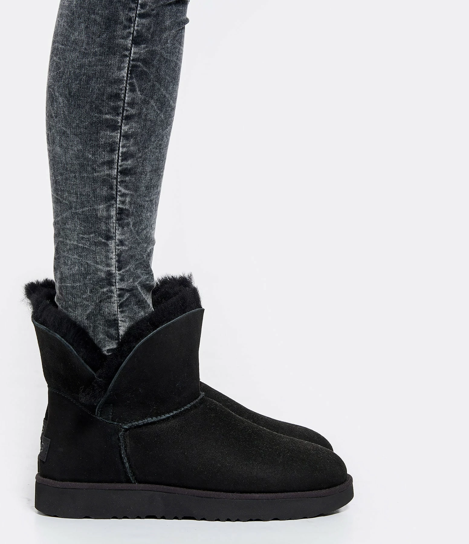 Bottines fourrées en peau de mouton retournée. Bouts ronds. Étiquette UGG aux talons. Semelles extérieures Treadlite by UGG très légères et assurant un meilleur confort.