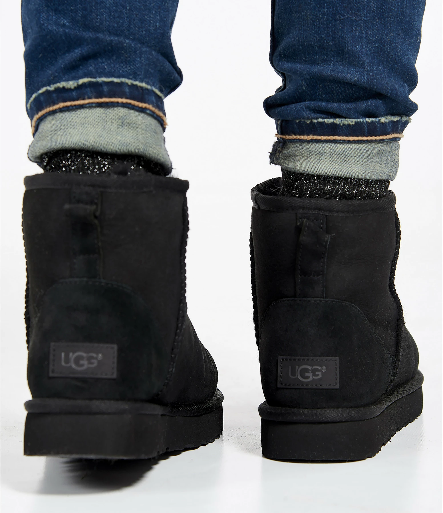 Bottines fourrées en peau de mouton retournée. Bouts ronds. Étiquette UGG aux talons. Semelles extérieures Treadlite by UGG très légères et assurant un meilleur confort.