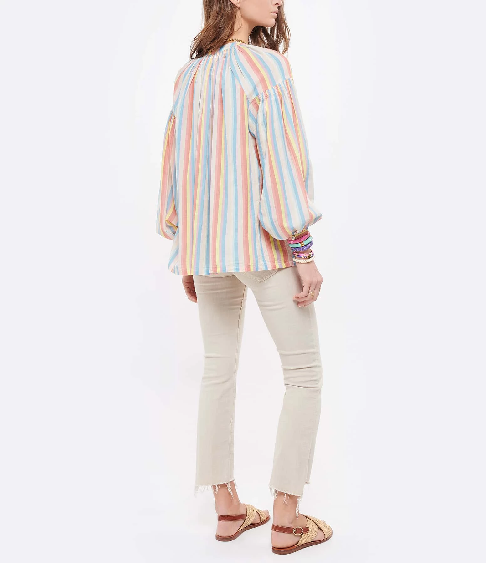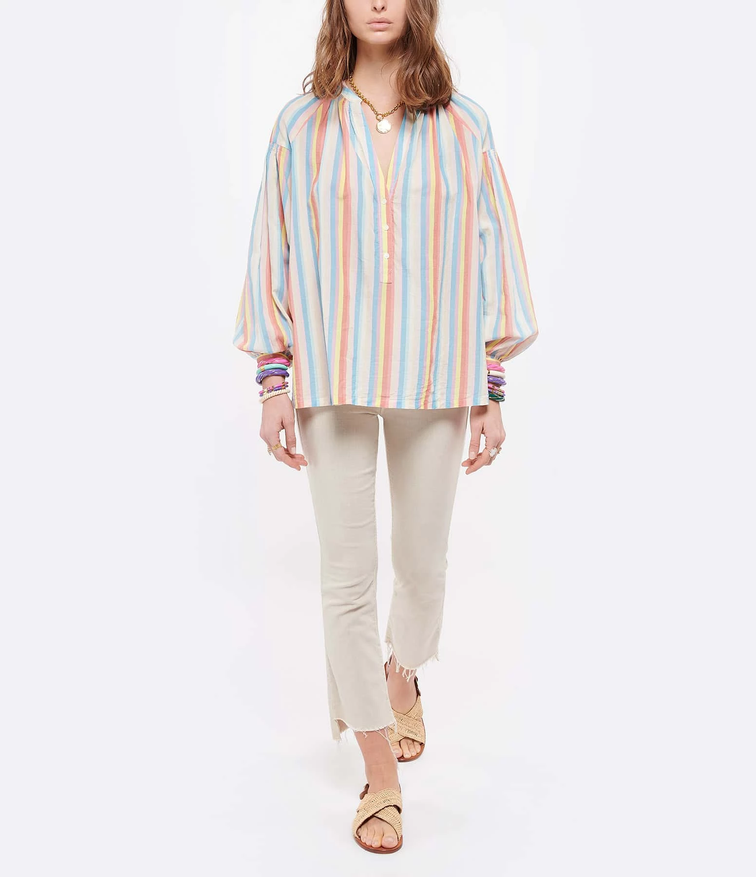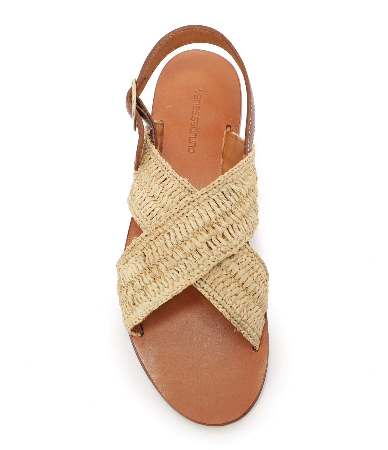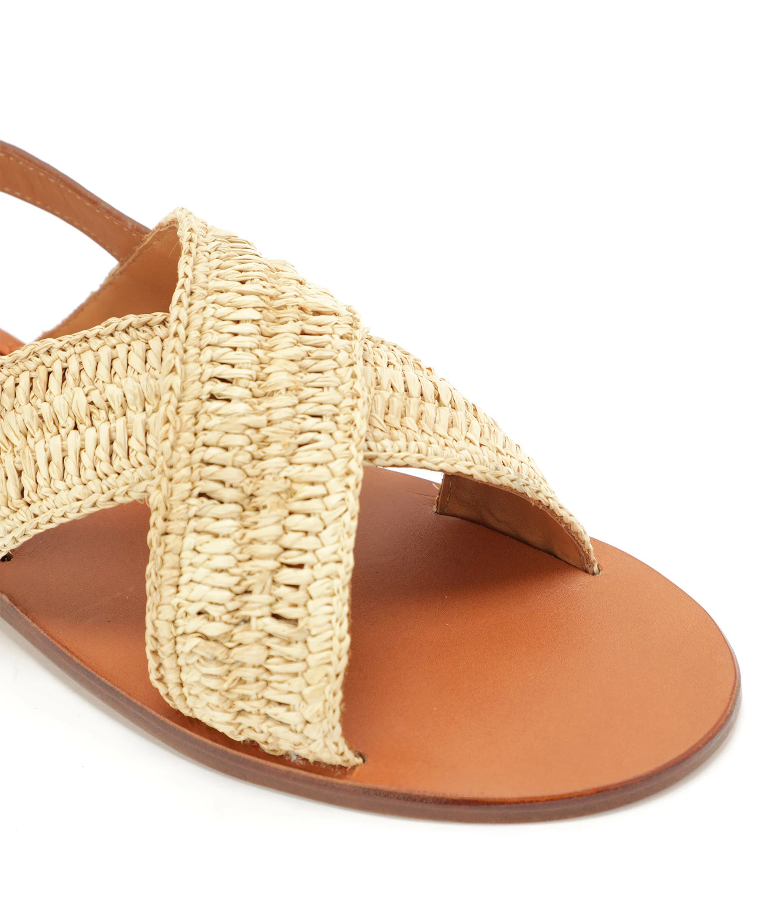 Sandales plates en raphia. Bride réglable autour de la cheville Boucle dorée sur la bride.