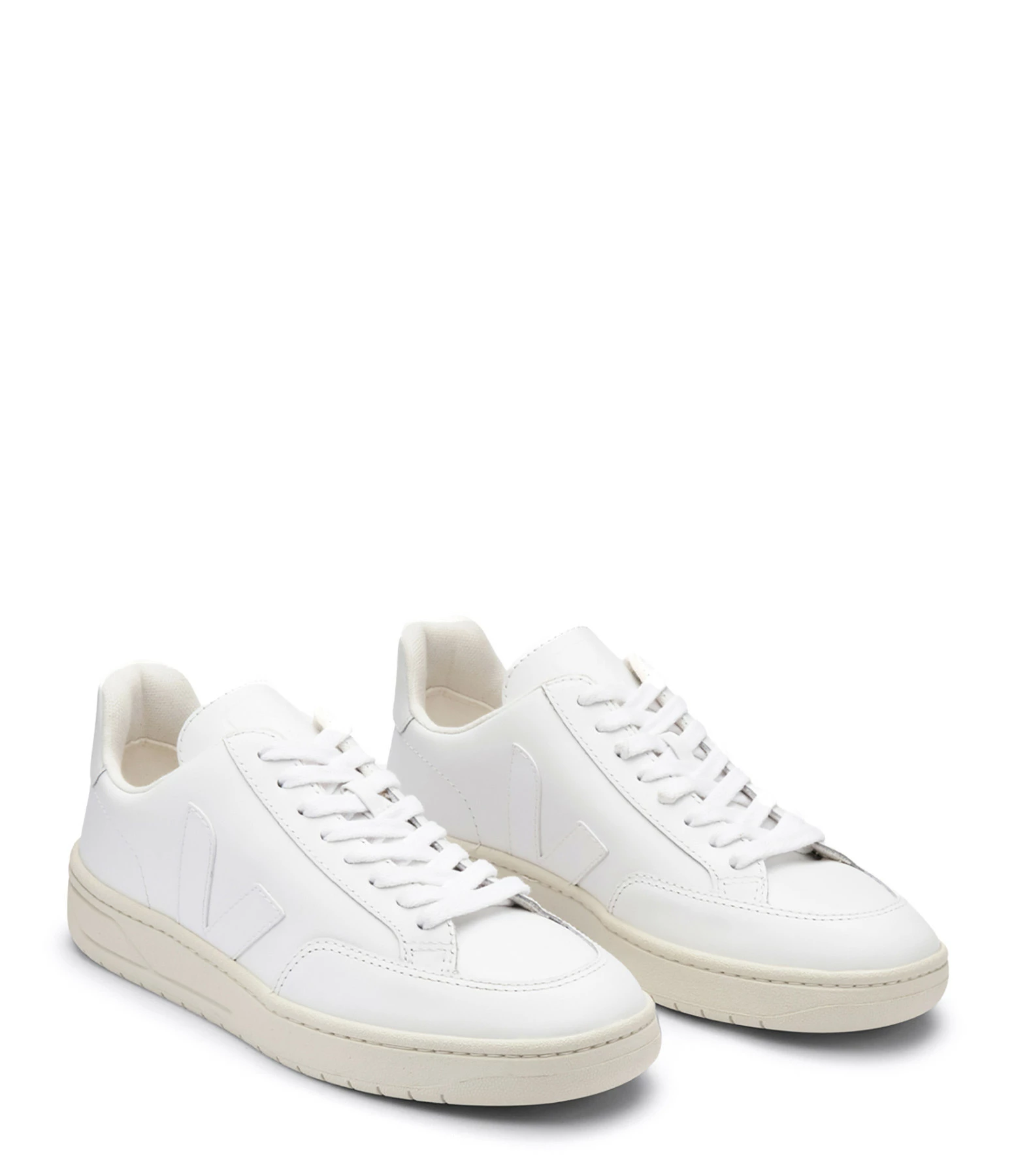 Baskets en cuir lisse blanc. Logo latéral “V” et renfort talon en cuir blanc. Renfort talon en cuir lisse.