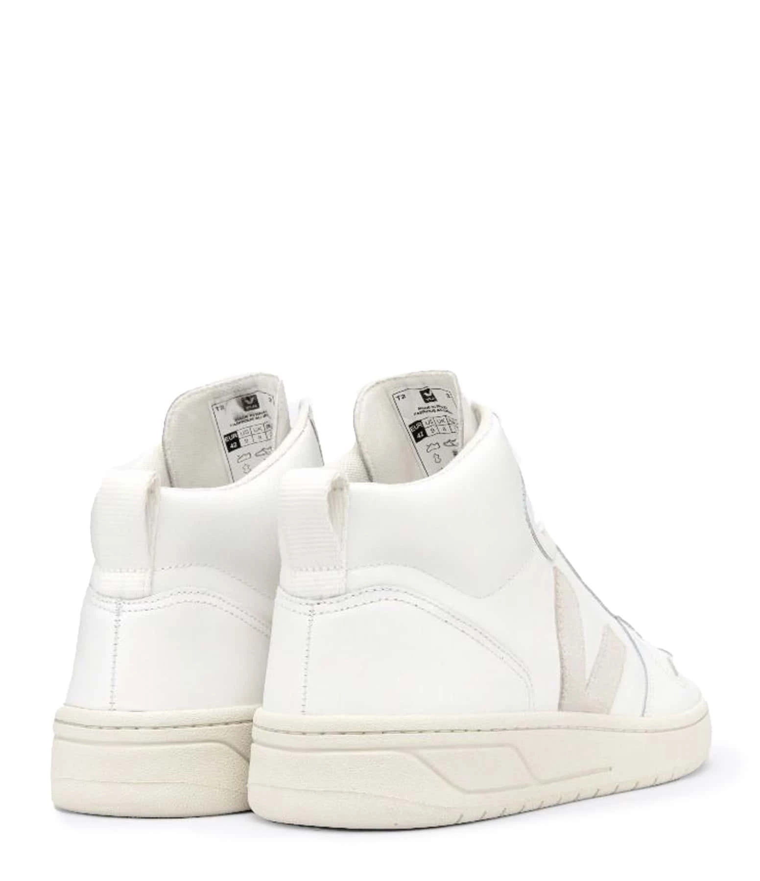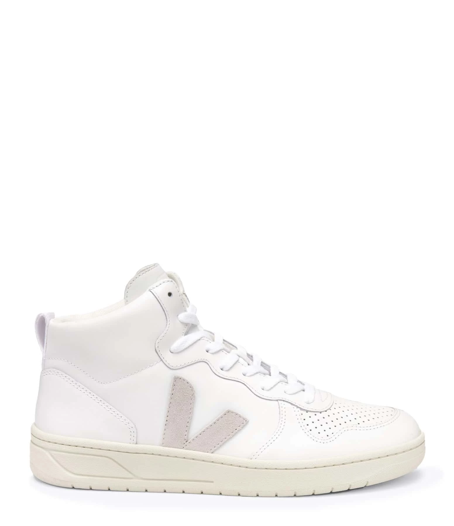 Baskets montantes en cuir lisse blanc avec logo V en caoutchouc naturel. Lacets blancs.