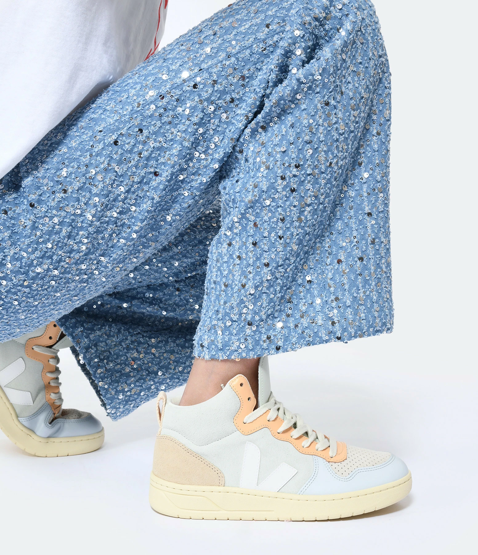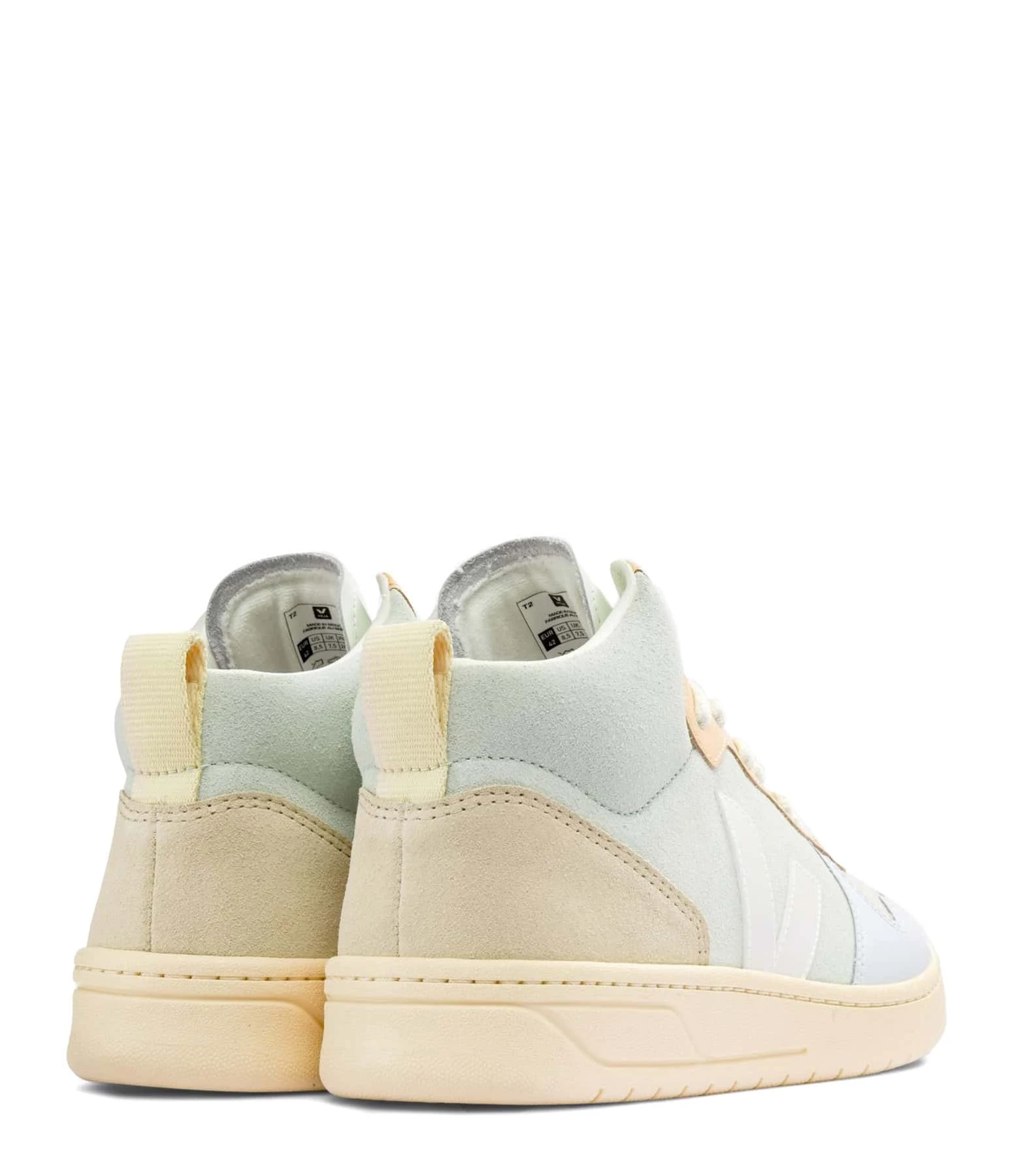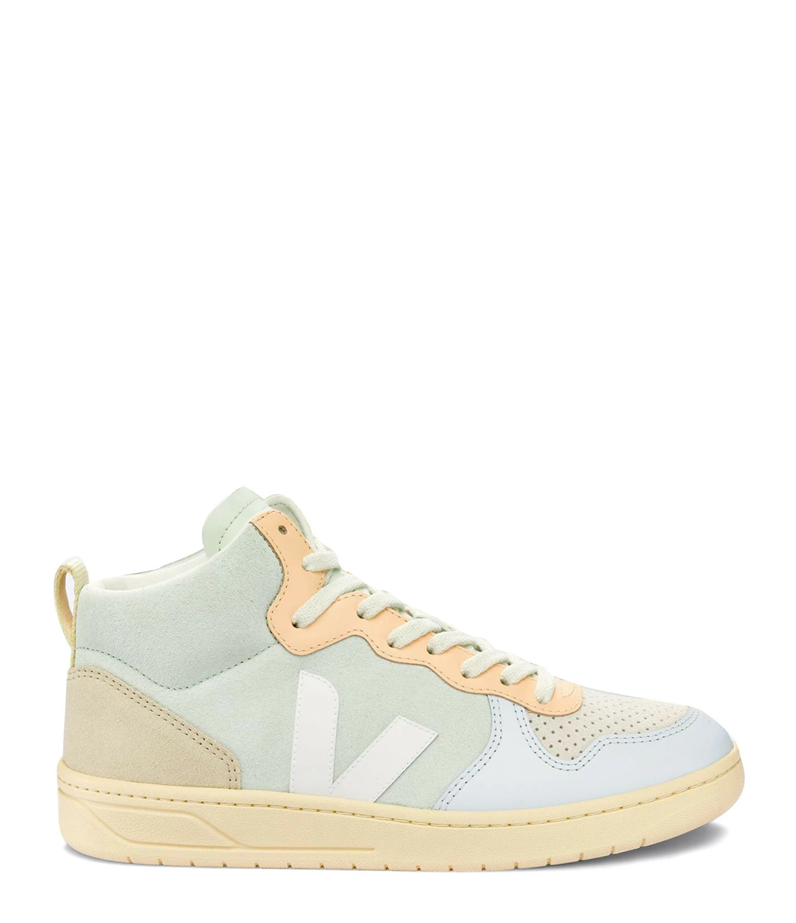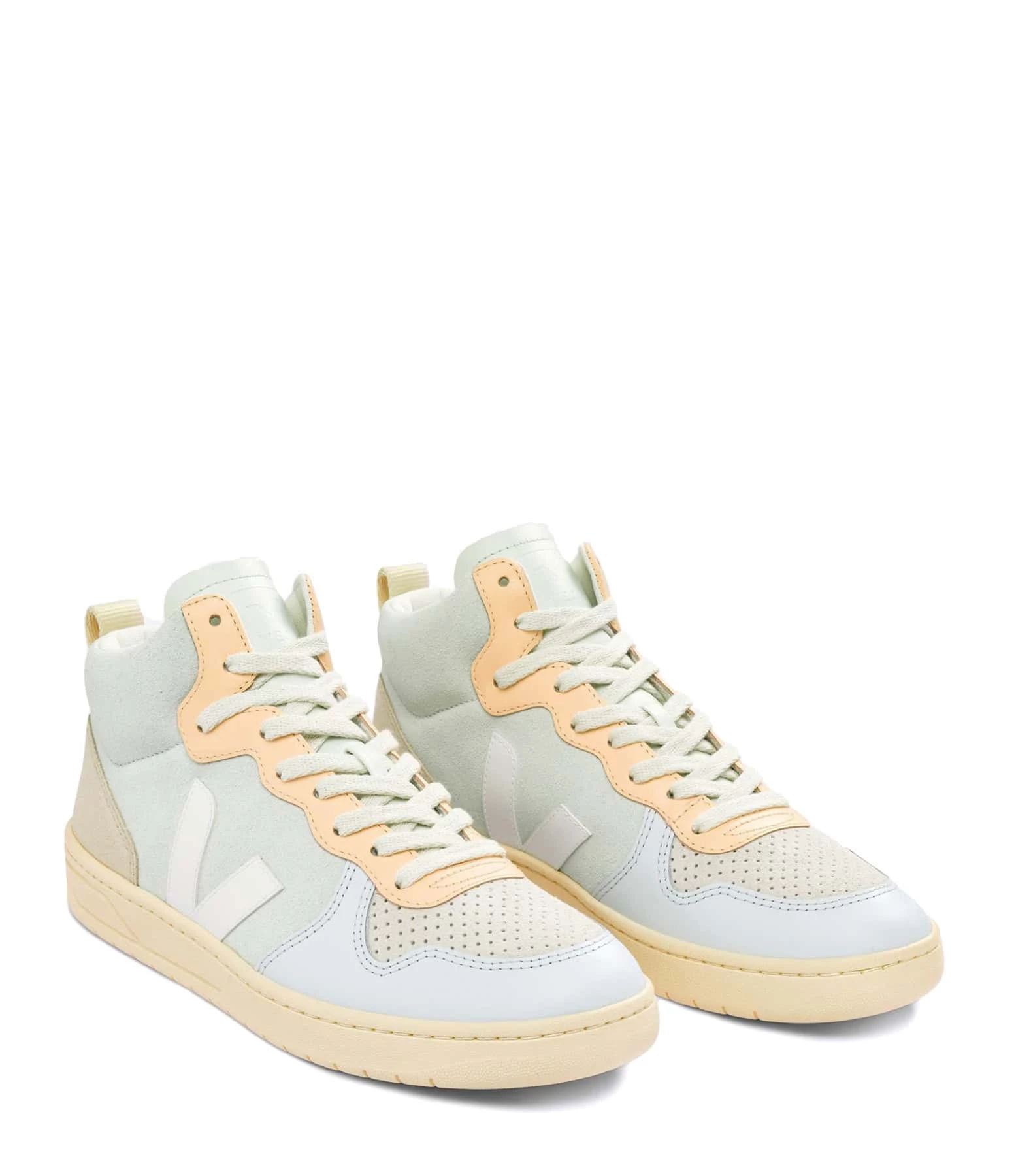 Baskets montantes en cuir lisse et suédé multicolore avec logo V en caoutchouc blanc. Lacets écrus.